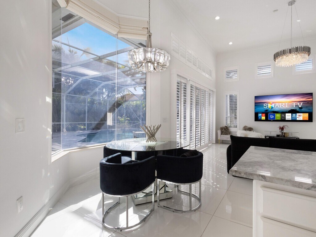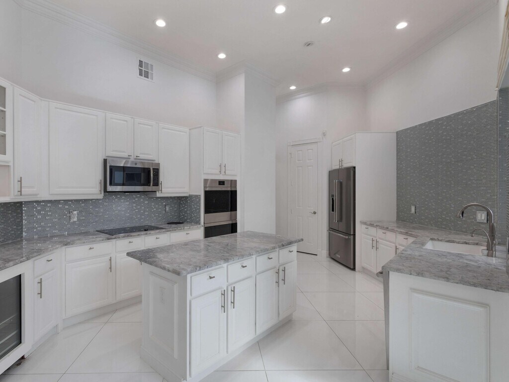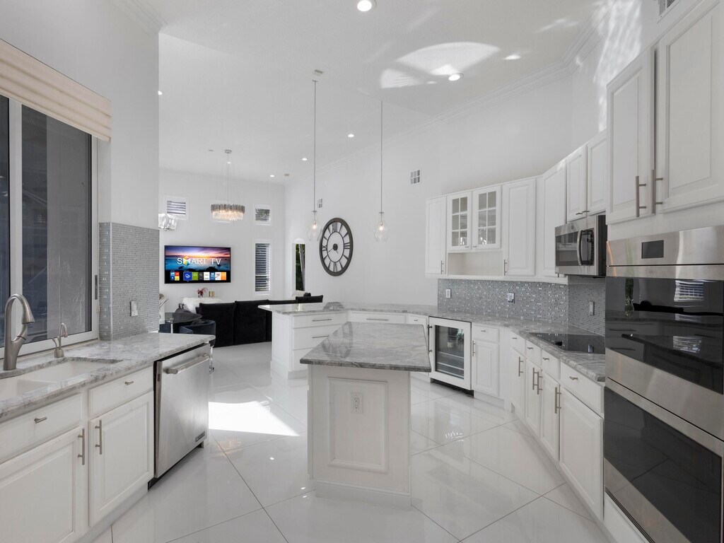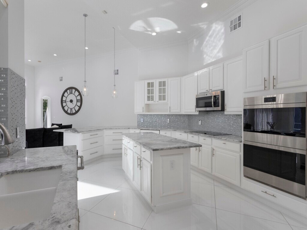 Modern and gorgeous home now available in Boca Raton. 4 bedroom and a den and 3.5 baths ranch with a private screened enclosure, pool and hot tub in popular Crystal Pointe in Boca Falls subdivision. This is a secured manned gated community with 2 entrances. Freshly painted inside and outside with many updates throughout including updated baths. Kitchen has many upgrades including quartzite countertops, wolf double ovens and more. Crown molding throughout and decorator finishes. Central vacuum system. Many walk in closets throughout including 2 in the master bedroom. This is an ideal split floor plan. There is beautiful marble on the patio. This is a premier resort style community with pickleball, tennis, pool, clubhouse, fitness center, basketball, jog and walking paths for miles.