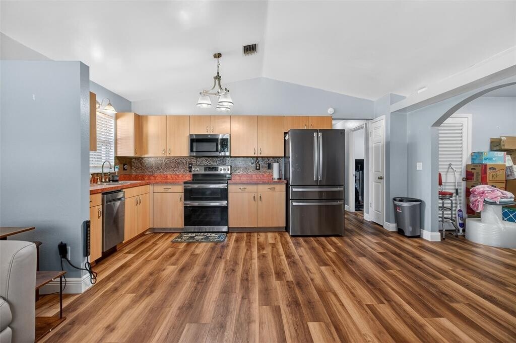 Rent this beautifully updated 3-bedroom,2-bath home in Largo,FL,located just 3–4 miles from the Gulf beaches. The home is currently being freshly painted inside and out,creating a bright,clean,and move-in-ready space. Inside,you’ll find luxury vinyl plank flooring throughout,vaulted ceilings that enhance the open and airy feel,and a modern layout ideal for both everyday living and entertaining. The kitchen is equipped with brand-new appliances (2025),and a washer and dryer are included for tenant convenience. Step outside to a large backyard,perfect for relaxing,hosting gatherings,or letting your dog roam—pets are welcome. Centrally located in the heart of Largo,this home offers easy access to parks,shopping,dining,and major roadways,all while being minutes from award-winning beaches. Largo is known for its strong sense of community,excellent recreational amenities,and an unbeatable coastal lifestyle. If you’re looking for an updated home with space,comfort,and a desirable location near the beach,this one checks all the boxes. Schedule your showing today! MLS# TB8469117