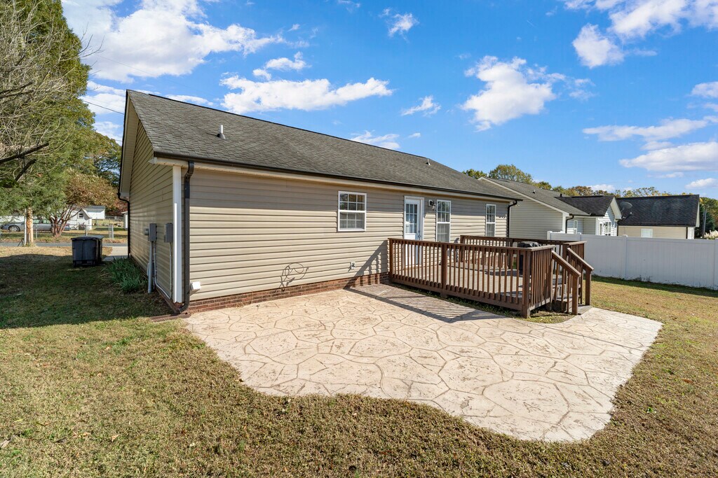 This move-in-ready home offers 3 bedrooms, 2 full baths, and a desirable split floor plan for added privacy. A vaulted living room anchored by a propane gas-log fireplace creates a warm, spacious gathering area. The galley kitchen and adjoining dining area feature durable tile flooring. The primary suite includes a walk-in closet and double-vanity bath. All bedrooms come with ceiling fans and new carpet. Outdoor living is a standout with an amazing covered front porch, a freshly stained rear deck, a concrete patio, and a large backyard—perfect for relaxing or entertaining. At Branch Property Management, we strive to provide an experience that is cost-effective and convenient. That's why we provide a Resident Benefits Package (RBP) to address common headaches for our residents. Our program handles insurance, identity protection, pest control, air filter changes, utility set up, credit building, rent rewards, and more at a rate of $50.00/month, added to every property as a required program. More details upon application. Total Monthly Payment (Rent + RBP)*: $1,850 *If you provide your own insurance policy, the RBP cost will be reduced by the amount of the insurance premium billed by Second Nature Insurance Services (NPN No. 20224621)
