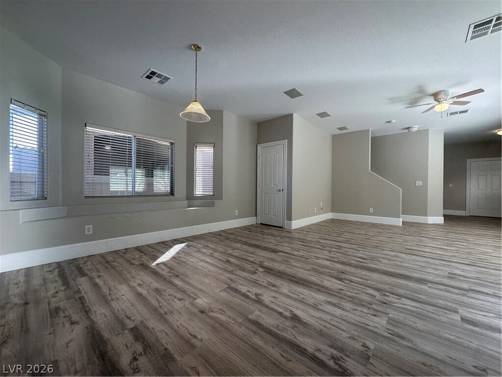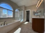 Well-maintained two-story home featuring a spacious and functional layout with modern updates throughout. Interior highlights include wood-style flooring, neutral paint, and abundant natural light. The kitchen offers granite countertops, ample cabinetry, and stainless steel appliances, opening to the main living area. Upstairs includes generously sized bedrooms, including a primary suite with two walk-in closets and an en-suite bath with dual sinks, soaking tub, and separate shower. The home also features a dedicated laundry room with washer and dryer, updated lighting, and plenty of storage. Exterior offers low-maintenance desert landscaping, a private driveway, and a two-car garage. Small dogs welcomed.