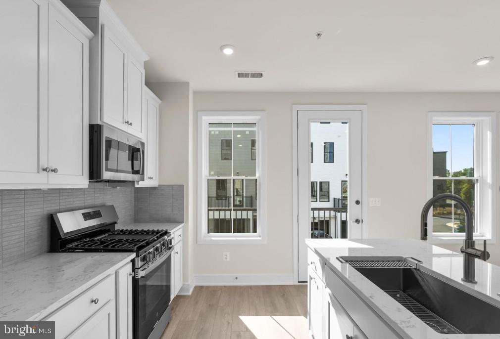 Brand New Townhome-Style Condominium — Ready for Immediate Move-In! Welcome to the Cameron 24-R1 – Homesite 198 at Demott & Silver—a stunning, newly completed townhome-style condominium offering the comfort of a townhome with the ease of low-maintenance living. Featuring 3 bedrooms, 2 full bathrooms, 1 half bathroom, and a one-car rear-load garage with electric charging plud ready this beautiful home is move-in ready today! Designed for flexibility, style, and everyday comfort, this 4-level home offers 2,205 finished square feet of bright, open living space. The welcoming entry with mudroom leads to an open-concept main level, perfect for seamless gatherings. Enjoy a spacious chef-inspired kitchen with upgraded cabinets, quartz countertops, stainless steel appliances, and wide Luxury Vinyl Plank (LVP) flooring throughout the main living areas and all bedrooms. A second-level deck provides effortless indoor-outdoor flow—perfect for morning coffee or evening relaxation. Retreat to the impressive primary suite, featuring a large walk-in closet and a spa-like bathroom with double sinks, soaking tub, and oversized shower with built-in seat. This home truly lives like a townhome, but offers the simple, low-maintenance lifestyle of a condominium—the best of both worlds.