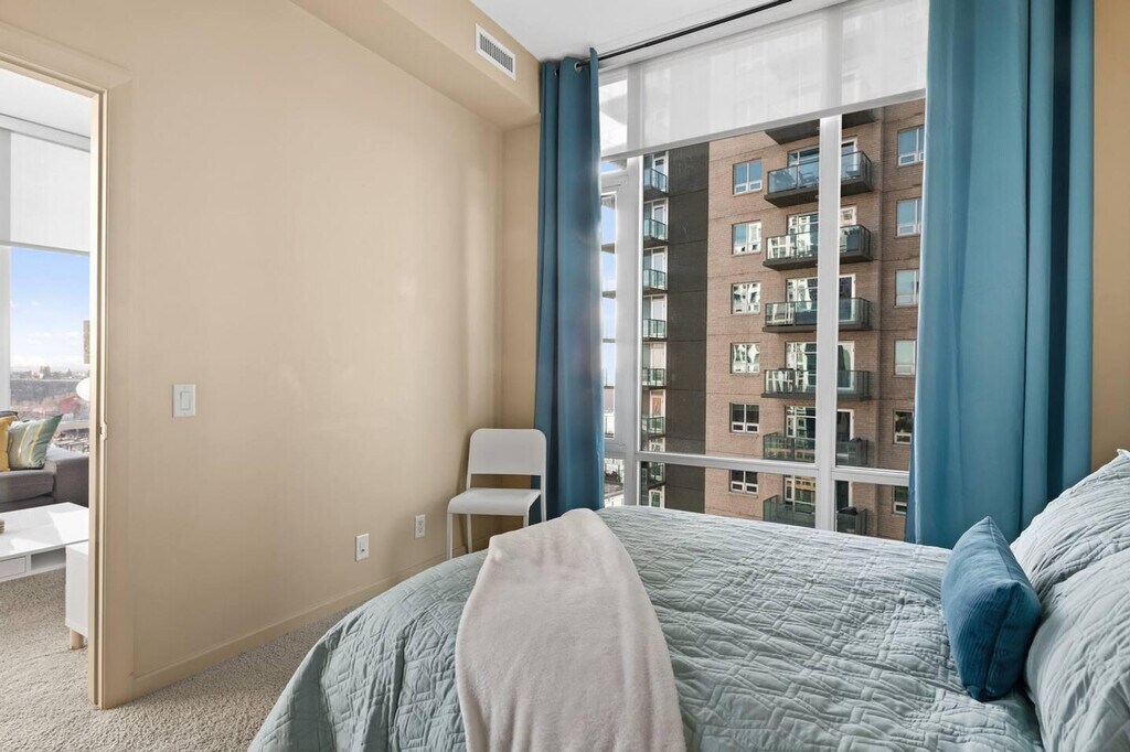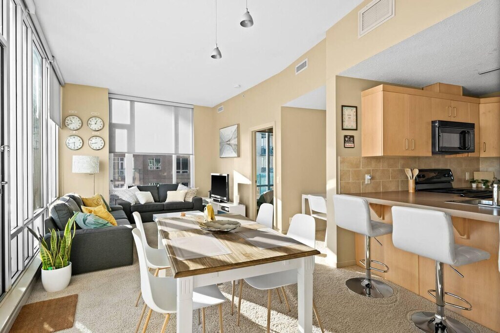 Discover the best of Calgary from this amazing and spacious 2-bedroom, 2-bathroom apartment on the 15th floor of a 24-story building. Please note that the elevators in the building are not working until the end of December, and you have to walk up to the 15th floor. Feel at home in this modern building located in Calgary's stylish and revitalized Beltline district. This comfortable suite has everything you need to feel right at home. The fully functional kitchen includes tea, coffee, a kettle, a coffeemaker, and a toaster. Enjoy entertainment with the smart TV, Netflix, and Wi-Fi. A washer and dryer are available for your convenience, along with towels, shampoo, conditioner, body wash, a hair dryer, and other toiletries. Outstanding location, steps to the C-Train, Scotiabank Saddledome, Stampede Grounds, Sunterra Market, H-market, Elbow River, Repsol Sport Centre, and 17th Ave Shopping & Dining. Enjoy a clear view of the Calgary Tower. The maximum capacity of the apartment is 4 adults. Extra guests who are not included in the reservation will not be allowed in the building. Pets are not allowed in the building, and if you arrive with pets, you will not be allowed to enter, and no refund will be provided. This is an adult-only residence, and children are not allowed on the premises. If smoking occurs inside, there is damage to the unit, or other house rules are violated, the $500 deposit will not be refunded. [SI]
