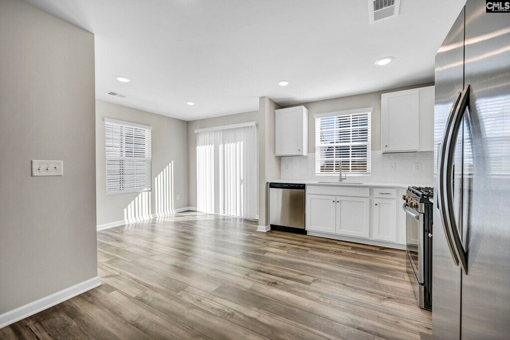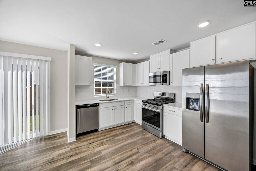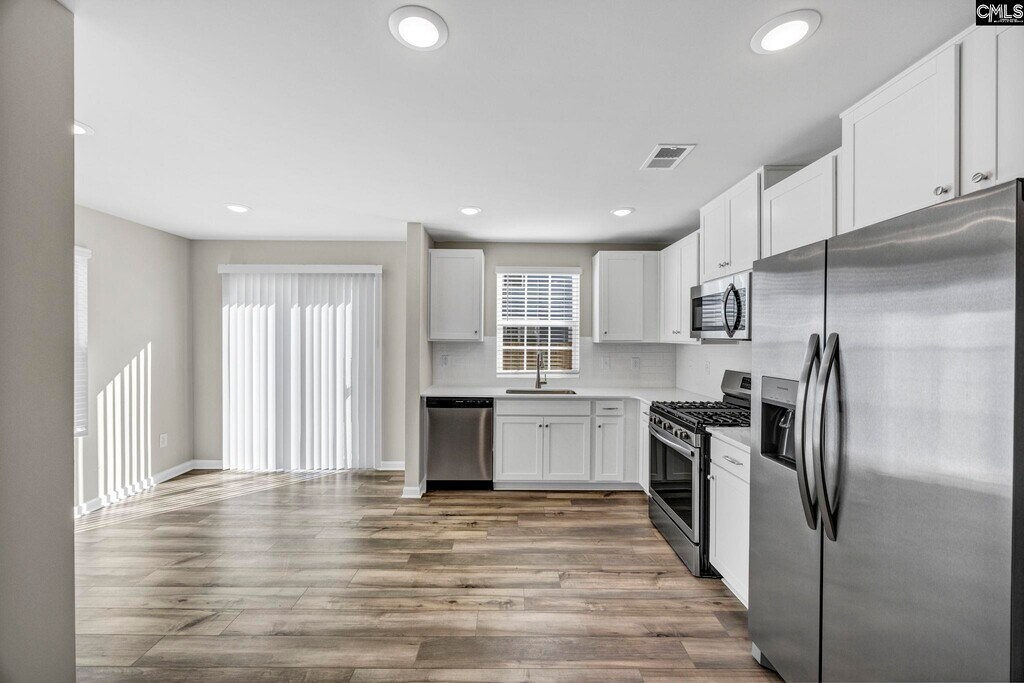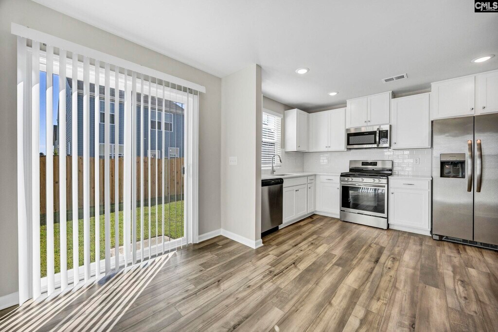 PET FRIENDLY! Be the first to live in this beautifully crafted, farmhouse-inspired townhome offering the perfect mix of style, comfort, and convenience. Featuring 3 bedrooms and 2.5 baths, this thoughtfully designed home welcomes you with luxury vinyl plank flooring throughout the main level and energy-efficient LED lighting. The kitchen is a standout with granite countertops, a stylish tile backsplash, stainless steel appliances, a gas stove, and a spacious pantry. Upstairs, the generous primary suite boasts a large walk-in closet and a private bath with double vanity and walk-in shower. Two additional bedrooms and a full bathroom provide plenty of space for family or guests. A washer and dryer are also included for added ease. Enjoy modern perks like a lawn irrigation system, basic Spectrum internet, a one-car garage, and HOA-maintained yard care. Perfectly located only 8 miles from downtown Lexington and 3 miles from Gilbert, home of the famous Peachtree Festival. Pack a picnic and take a stroll through Gilbert Park. Enjoy the convenience of nearby shopping, restaurants, Lake Murray and top-rated schools. Move-in ready, this low-maintenance living in a prime location. Disclaimer: CMLS has not reviewed and, therefore, does not endorse vendors who may appear in listings.
