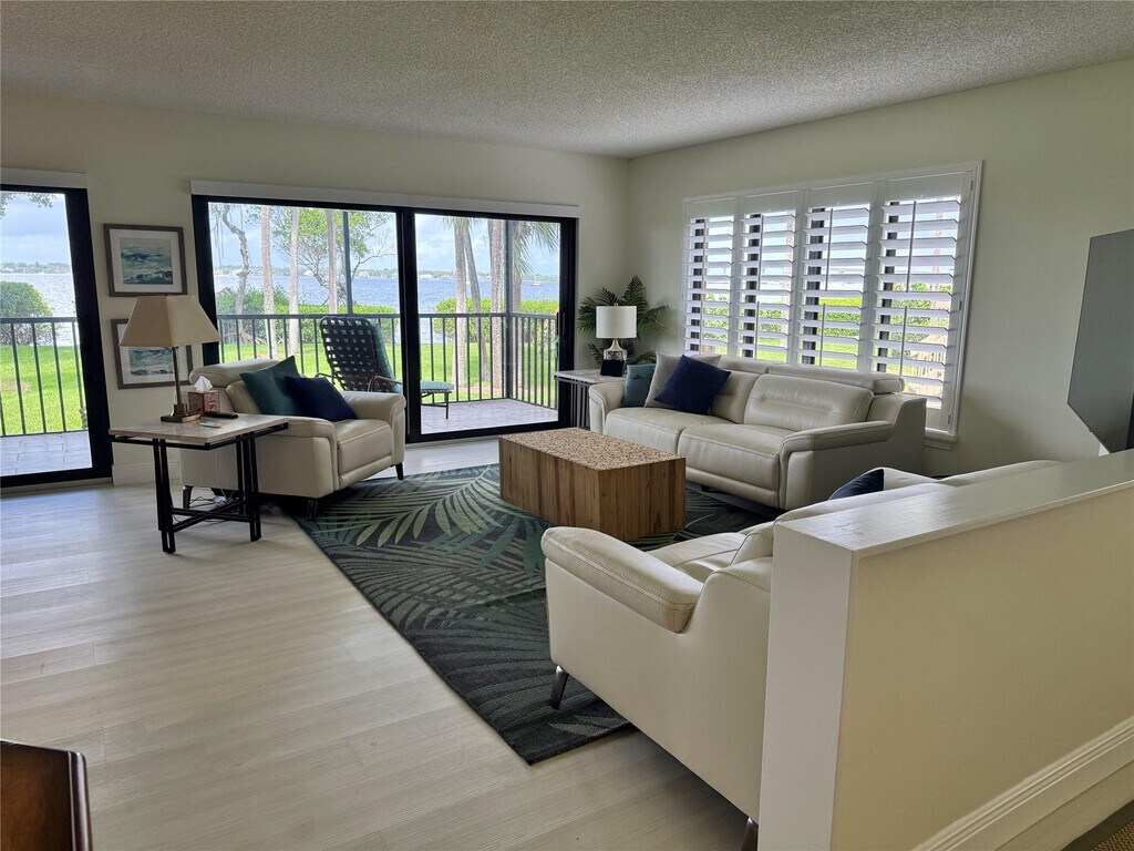 Panoramic Waterfront Living at Riverwood IRP. Experience breathtaking wide-water Intracoastal views from this beautifully updated first-floor corner condo. This light-filled residence offers a spacious open floor plan,with glass sliding glass doors leading to a screened porch ideal to enjoy sunsets. Thoughtfully renovated,this home features full-impact windows and elegant plantation shutters,a modern kitchen with quartz countertops,custom cabinetry,and new Café appliances,new LVP flooring throughout,new w/d,2025 A/C,motorized blinds on sliders. Step directly from your screened porch to private kayak storage and launch! Condo is available for rent: season $6500/mo for 1+ month (months available Dec,Apr,May). Condo also available FOR SALE with potential for Owner Financing. MLS ID F10511905