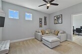Welcome to one of the most attractive rental opportunities in the Sawgrass Plantation area! This stunning two-story single-family home offers a variety of features that meet all your needs. With 4 bedrooms,3 full bathrooms,a 2-car garage,and an exquisite open-concept gourmet kitchen,this home is a true gem. Built in 2019 by Park Square Homes,this 2,385-square-foot residence has been thoughtfully upgraded with ceramic tile in common areas,a gourmet kitchen equipped with a double oven,quartz countertops,42'' cabinets,stainless steel appliances,an extended laundry area,pavers,a lanai,and more. Upon entering,you will be welcomed by a spacious flex room that can easily be customized to suit your preferences,whether as an office space,formal living room,or game room. Next to it is the generously sized kitchen,complete with ample counter space for meal preparation and a dining area that offers a picturesque view of the stunning lake and its captivating sunsets. The family room,located adjacent to the kitchen,provides the perfect space for family gatherings and entertainment,making it ideal for hosting movie or game nights. As you head to the second floor,the loft area serves as the central connecting point to the three bedrooms and two bathrooms. A laundry chute adds convenience to your daily routine by simplifying the task of doing laundry. The primary bedroom features a spacious walk-in closet,a luxurious en-suite bathroom,and plenty of room for a king-size bed along with all your essentials. Outside,the partially fenced backyard and lush green garden space are perfect for relaxing,playing a sport,or simply enjoying the beauty of nature. Conveniently located just minutes from the Florida Mall,convenience stores,Orlando International Airport,SunRail,Brightline train stations,and more,this home offers both luxury and accessibility. Don’t miss out on this incredible opportunity—schedule your showing today! The home will be available starting December 4,2025. First month’s rent and a security deposit will be required,and pets are allowed with a non-refundable fee of $300.00. Landscaping is included in the rent payment MLS# S5139723