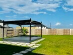Welcome to this stunning modern two-story home,designed for those who love open-concept living and spacious entertaining. As you step inside,you'll be greeted by soaring high ceilings and a large family room that seamlessly flows into the dining area and kitchen,creating a perfect space for gatherings and everyday living. The Owner's Suite,located at the back of the home for maximum privacy,features a luxurious en-suite bath,offering a tranquil retreat after a long day. At the front of the home,a guest bedroom with a full bath provides comfort and convenience for visitors. Upstairs,you'll discover two additional bedrooms,a full bath,and a versatile game room,perfect for family fun or as an additional living space. This home also offers a pergola in the backyard,ideal for family gatherings; additional lighting in the garage and EV charging in the garage offer more convenience. Washer,dryer and refrigerator are included! Home and carpet have been professionally cleaned. MLS# 38339886