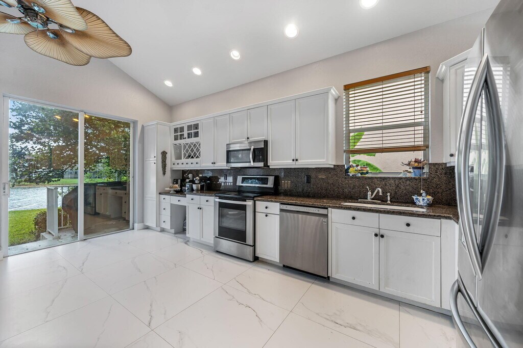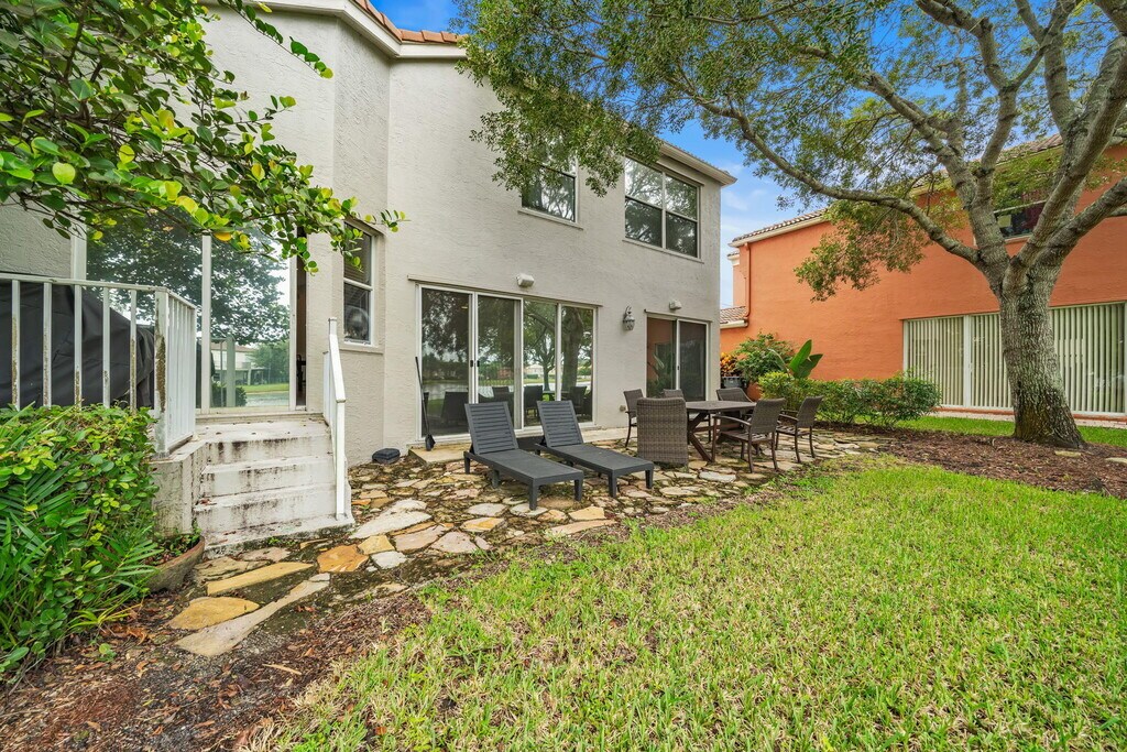 Welcome to this beautiful Mediterranean-style home located in the highly sought-after gated community of Olympia in Wellington. Built in 2003, this two-story residence offers nearly 2,800 square feet of comfortable living space with four bedrooms and three full bathrooms, including a spacious upstairs master suite and a first-floor guest room that can easily serve as a private office. The home's thoughtful floor plan features a formal living room, dining room, family room, and an open kitchen with ample space for both entertaining and everyday living. Upstairs, the oversized master retreat provides a peaceful escape, while additional bedrooms are generously sized. The home sits on a beautifully landscaped .16 acre waterfront lot and offers tranquil lake views.
