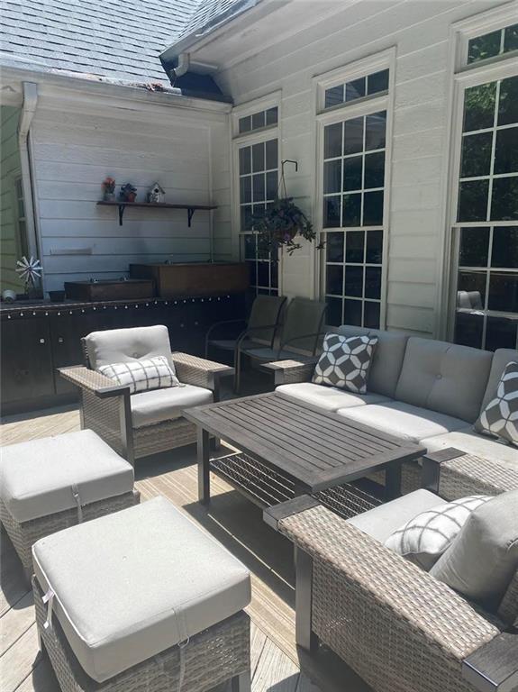 One of a kind custom home w/covered front porch! Remodeled kitchen w/ leathered granite,Chip & Joanna cabinet storage island,brick backsplash with pot filler,slate floor and white cabinets. Master on main to office. New roof,new HVACs. Nest t'stats. NEW Hardwood floors,foyer & formal dining. 3 bedroom on 2nd floor w/ remodeled upstairs bath. Finished basement w/cozy tv room,large rec room,private office unfinished workshop. Deck w/ outdoor kitchen. Private backyard w/firepit. Covered porch basement level. Peachtree Ridge top rated cluster. Check out the party lights in the back! Convenient to shopping,I85 and he performing arts at the Gwinnet Arena. Beautiful quiet cul-de-sac street. THIS HOUSE COMES FULLY FURNISHED.