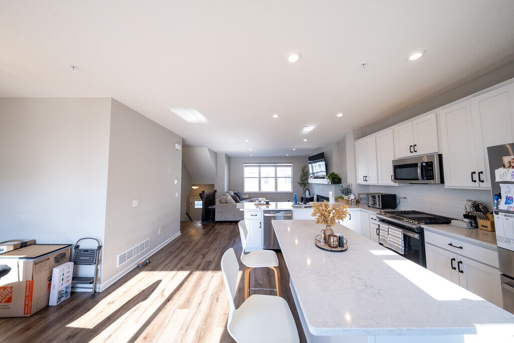 For a full video tour of this beautiful home, contact the listing agent, Chantel Weiman, or simply search “21860 136th Way, Rogers” on YouTube! Welcome home! Step into this beautifully finished 2023 new construction townhome located in the sought-after Marsh View community in Rogers. This multi-level home offers a bright, open layout with modern finishes, thoughtful separation of space, and low-maintenance living. The main living area welcomes you with an open and airy feel, featuring a spacious family room (15x16) with an electric fireplace that flows seamlessly into the kitchen and dining area—perfect for both everyday living and entertaining. Large windows bring in wonderful natural light, creating a warm and inviting atmosphere. The kitchen (16x10) is designed with both style and function in mind. Enjoy fingerprint-resistant stainless steel appliances, solid surface countertops, white subway tile backsplash, a pantry, and a center island for extra seating and prep space. The informal dining area (14x10) sits just off the kitchen, making hosting easy and comfortable. Step outside to your private upper-level deck (9x5) for morning coffee or evening relaxation. A convenient main-level half bath adds practicality for guests. Head upstairs and you'll find all three bedrooms thoughtfully arranged on one level. The spacious primary suite (15x12) offers a large walk-in closet and a private en-suite bathroom with double sinks and solid surface countertops. Two additional bedrooms (10x10 each) and a full bathroom provide flexibility for family, guests, or a home office setup. Laundry is conveniently located on the upper level for easy living. The finished lower level adds even more usable space with a recreation room (11x12), perfect for a second living area, workout room, play space, or media room. From here, enjoy direct access to your attached 2-stall tuckunder garage (437 sq ft). Located in Rogers with easy access to I-94 and Highway 101, this home offers convenience to shopping, dining, parks, and everyday essentials. School District: 728 – Elk River Area Schools This townhome offers the perfect blend of modern design, functional layout, and low-maintenance living—ready for you to call it home. For additional information, please use the link below for a YouTube video walkthrough of the home: LEASE TERMS: $2995 Security Deposit. Seeking a 12 month lease. Small dogs and cats may be accepted based on owner's approval and with a $500 non-refundable pet fee. Utilities: Tenant is responsible for utilities Trash, lawn & snow care are included in rent. RENTAL SCREENING GUIDELINES: See our website at