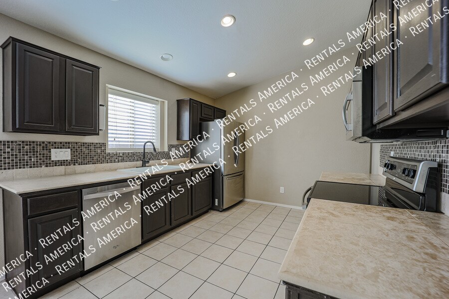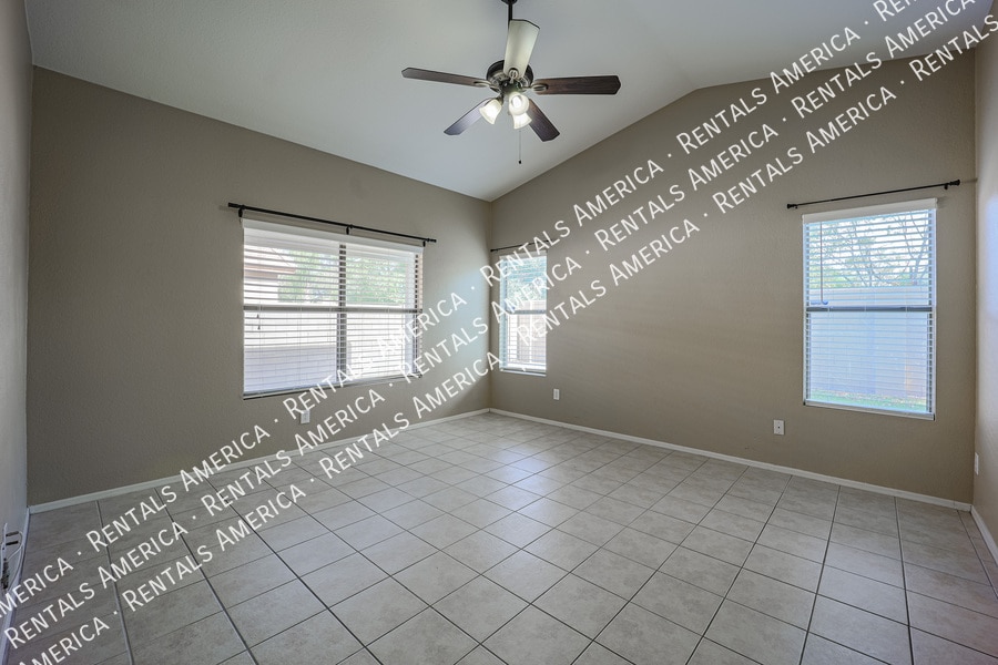 4 bed / 2 bath home in Finley Farms. Vaulted ceiling, neutral tile floors throughout. Large family room with French doors that open to the patio. Kitchen has all stainless steel appliances. Master bedroom has large walk in closet and master bathroom feature double sinks and large shower. Low Maintenance backyard with covered patio, large paver area and artificial turf. Community playgrounds and paths. Home is short drive from parks, shopping and 202 Freeway. HOA allows one small dog only. One Time Admin Fee: $300, Pet Deposit: $300/pet (if applicable), Service Fee: 2%. $39/month Resident Benefits Package, Helping Heroes Discount Available! Ceramic Tile Disposal Dogs Allowed Dryer Garage Pets Allowed Washer