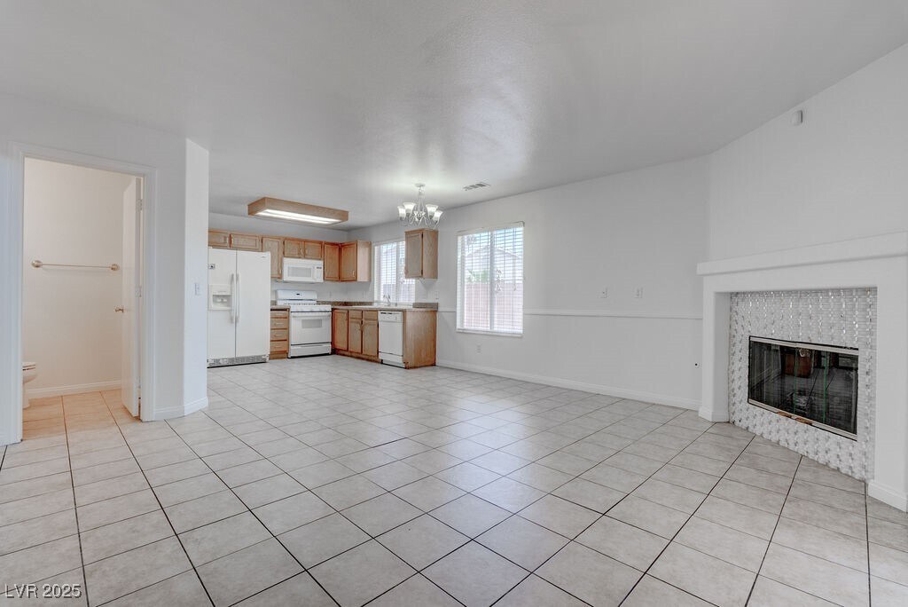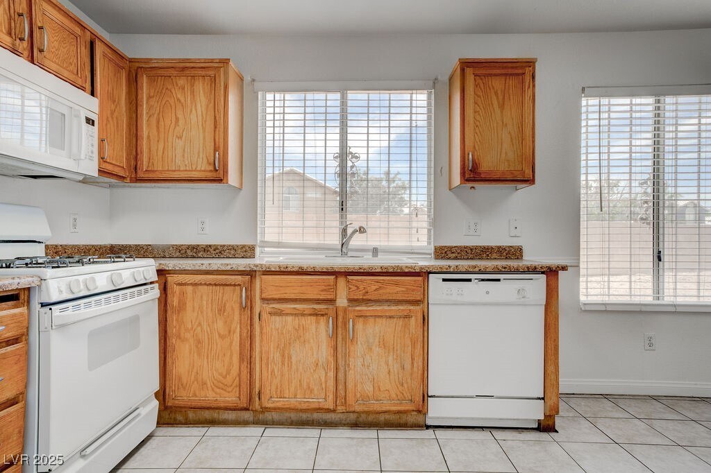 Don’t miss this RARE OPPORTUNITY to lease a beautifully updated 4-bedroom, 2.5-bath home on a corner lot in a quiet cul-de-sac! This spacious two-story gem features soaring ceilings, fresh paint, new carpet upstairs & tile flooring throughout the main level. The open-concept layout includes the family room with a fireplace and kitchen with a garden window, pantry, and white appliances. Upstairs, all bedrooms offer plush carpet and LED lighting, while the expansive primary suite boasts cathedral ceilings, dual sinks, a tub/shower combo, luxury vinyl planks flooring & mirrored double closet. The large backyard is perfect for entertaining, with a covered patio, RV parking & low-maintenance landscaping. Enjoy mountain views, a smart thermostat, solar screens, and a 2-car garage. Gated entry with a downstairs laundry area featuring built-in cabinets & a front-load dryer. Conveniently close to parks, schools, shopping, and Nellis Air Force Base—schedule your showing today!