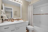 Enjoy this beautifully maintained 2 Bed, 2.5 Bath townhome in the conveniently located San Messina neighborhood in Weston. The open layout first floor includes a spacious light and bright kitchen with modern white cabinetry and appliances, a peninsula for counter seating, spacious dining and family room areas plus a half bath. Laundry in the 1 car garage, right off kitchen. Upstairs are 2 nice sized bedrooms, each with en-suite bathrooms, and ample closet space to provide comfortable living. Modern lighting and ceiling fans throughout. Sliding doors downstairs offer plentiful natural light and open to your dedicated outdoor patio space, surrounded by lush landscape. For more outdoor enjoyment, the community includes a playground and pool. The unit will be freshly painted before move in.