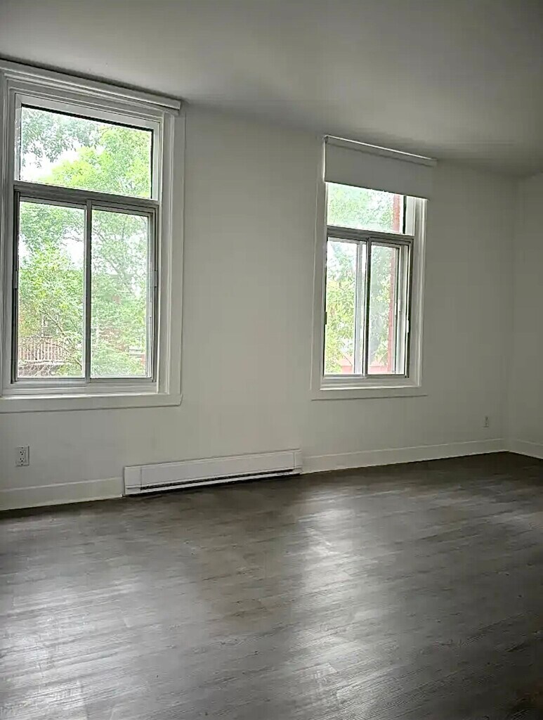 Spacious 5 1/2 apartment for rent on the third floor of a triplex in Hochelaga! Features: 1 large closed bedroom with a closet. 1 medium closed bedroom overlooking the main street. 1 small closed bedroom with a front balcony. 1 medium office with a closet. Closet in the entrance. Large rear balcony with storage and a small balcony at the front of the building. Ideal location! Three-minute walk to Joliette metro station and public transportation. All services (grocery stores, bakeries, pharmacies, convenience stores, restaurants, bars, gym, SAQ, banks, etc.) are less than a 5-minute walk away. Very respectful neighborhood and neighbors, with a beautiful alleyway. Completely renovated apartment: Fresh paint, new flooring and appliances, new bathroom and kitchen, plumbing and electrical systems completely redone. Very bright. New bathroom with a bathtub/shower. Four new appliances included. Credit check required. Home insurance required. Non-smoking. Option to have a clean, neutered indoor cat. Ideal for quiet people looking for a well-located apartment in Montreal. Video tour of the apartment available upon request :)
