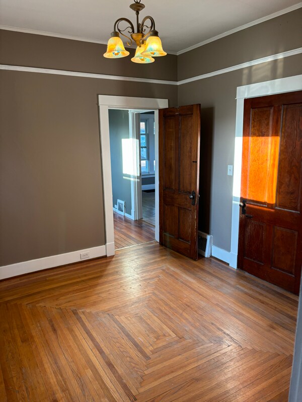 Property Id: 2198874 Check out this big five bedroom house with a fenced in back yard. As you walk in you'll notice the hardwood floors and spacious rooms. Not only are there a lot of bedrooms, but with a living room, dining room, extra kitchenette upstairs, and hobby room in the basement this house offers a ton of space. There is a covered front porch on the main entry and a closed in back foyer area that opens up to the back yard . Washer and dryer hookups are in the basement. There is plenty of off street parking with a big driveway and a parking area accessible from the ally behind the house.