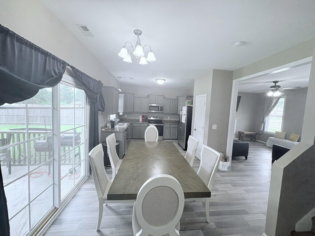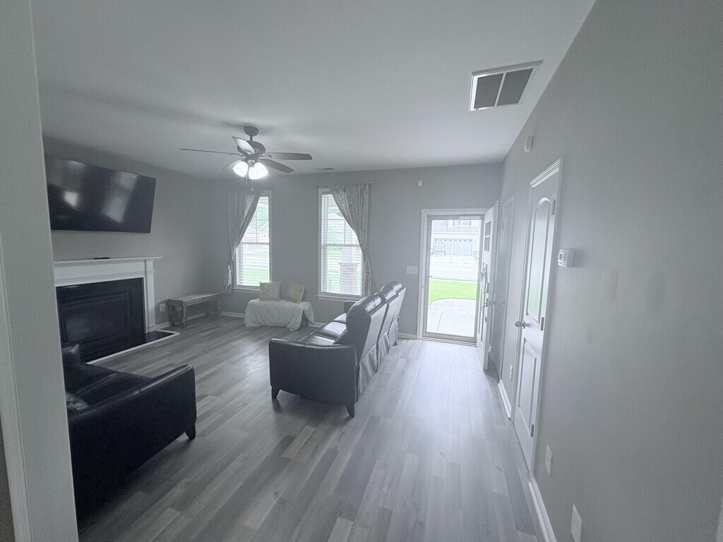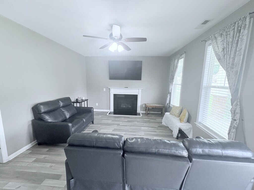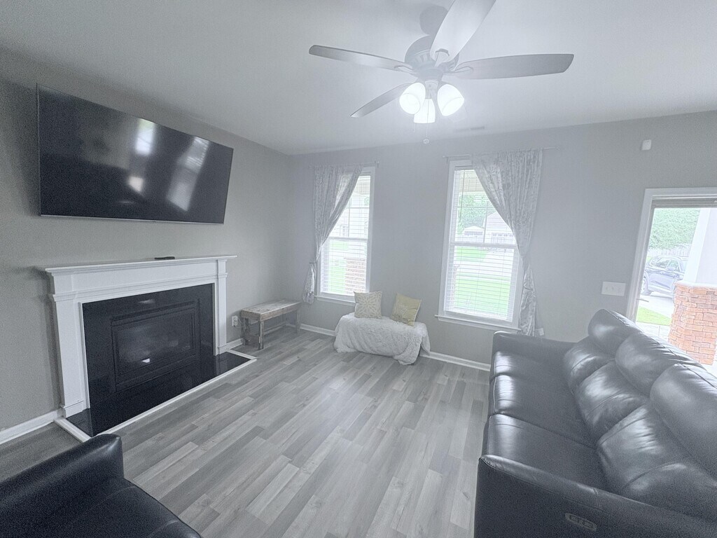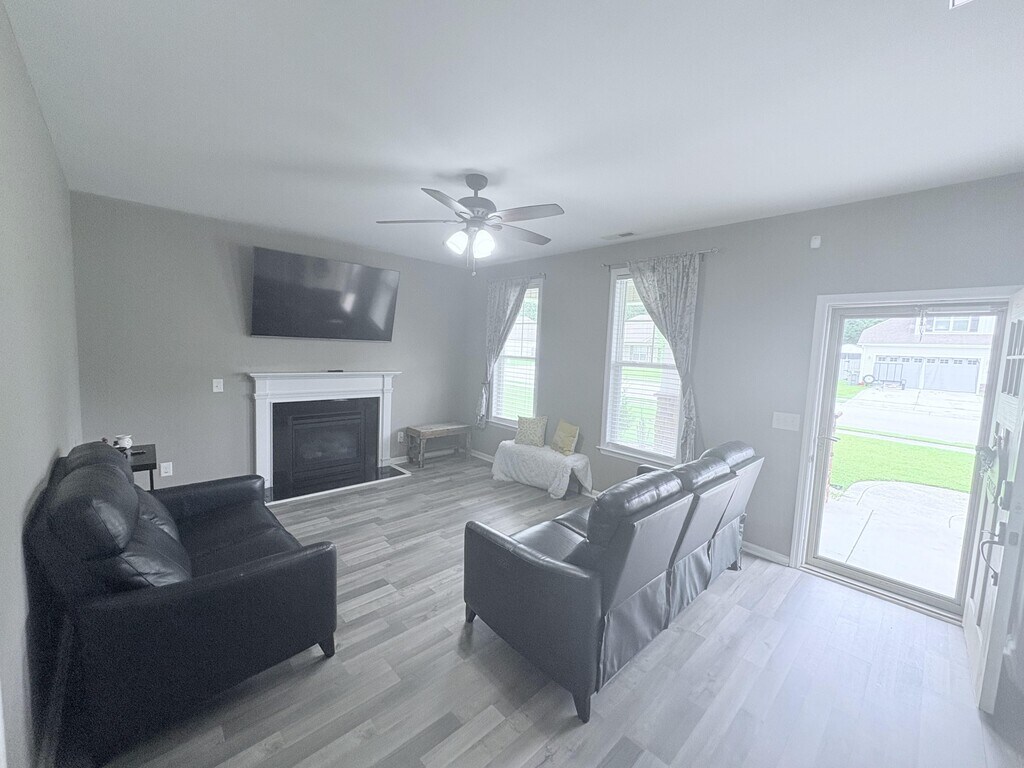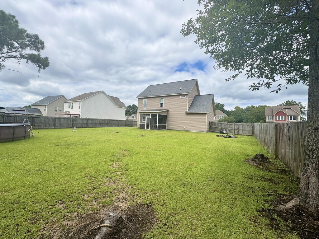 This BEAUTIFUL 2 story home features a spacious living room with a cozy fireplace that flows into the large kitchen that has stainless steel appliances, and lots of counter and cabinet space. The upstairs master bedroom has an en-suite bathroom with dual sinks and a walk-in closet. The other 3 bedrooms are nice in size as well. The enormous fenced in back yard and screened in patio is perfect for entertaining! Located minutes from Hunters Creek Elementary School, the main base, and stores, this home is perfectly located no matter what your needs are!