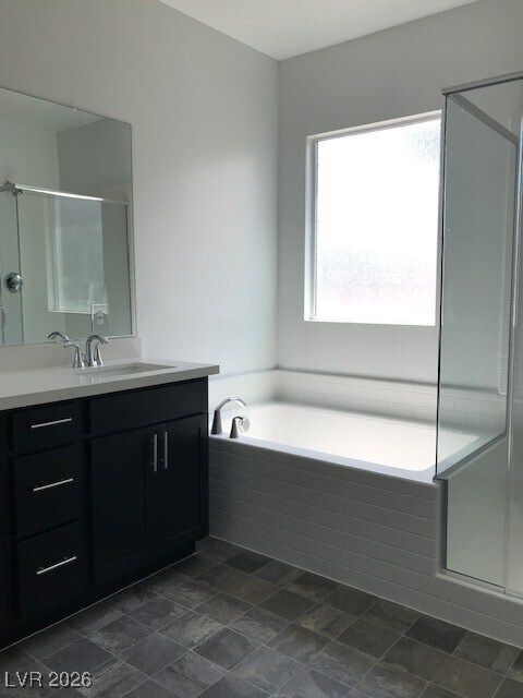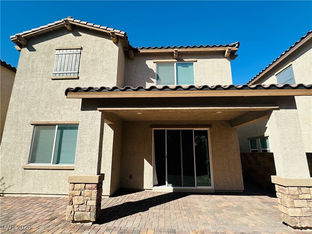 This stunning home, located in a desirable Henderson area in a gated community, features an inviting open-concept floor plan w/ distinct living & dining spaces. The kitchen serves as the heart of the home boasting a large island, quartz countertops, elegant dark cabinetry, stainless appliances & ample counter space. A versatile loft upstairs separates the primary bedroom from the secondary rooms, while the primary bath offers dual sinks and a separate tub & shower for added luxury. Ceiling fans throughout the home ensure comfort. The backyard features a covered patio - additional landscape install w/trees/shrubs/pavers will occur in current dirt areas of backyard upon HOA approval. Residents will also enjoy access to community amenities, including a pool, playground & BBQ areas.