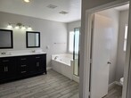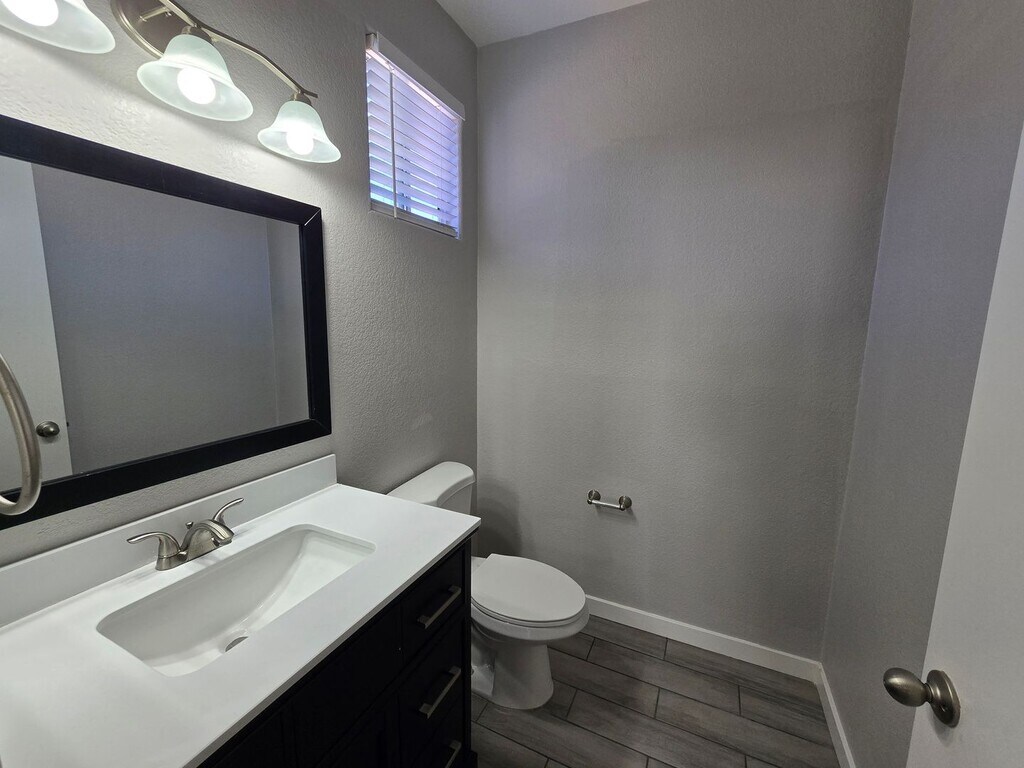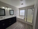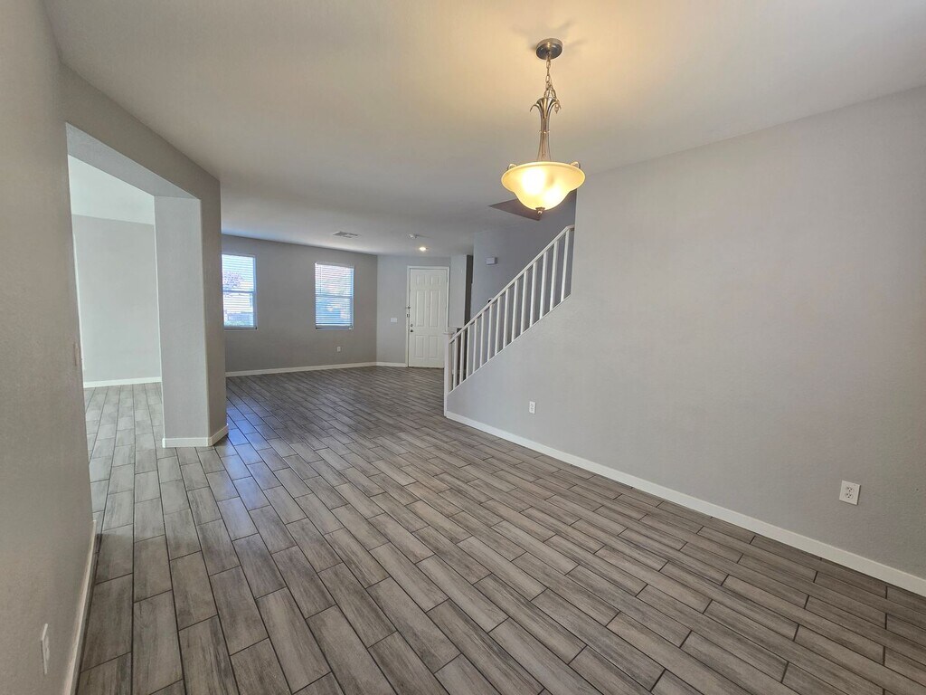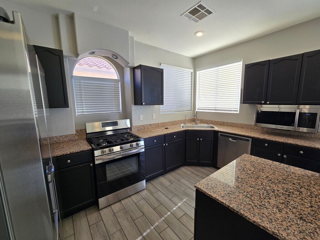 RHODE RANCH COUNTRY CLUB-Corner Lot 2 Story Home w/ 4 Bedrooms, 2.5 Baths, and 2 Car Garage. Property features wood like grey plank tile installed on the first floor and upstairs baths. All bathrooms have modern vanities with framed mirrors. When you enter you are welcomed by the open living room & dining area that also shows into the separate family room. Kitchen features stainless steel appliances, island and pantry. All 4 bedrooms, including laundry closet are upstairs. Primary bedroom is spacious with a walk-in closet and large ensuite bath with dual vanity and separate tub/shower. There is also a dual vanity secondary bathroom with separation between the vanities and rest of the bathroom. As a corner lot, there is a large backyard with desert landscaping for easier maintenance. Welcome home! Trash & Sewer INCLUDED in monthly rent! ***Minimum 650 Credit Score required, only small/medium sized dogs to be considered***
