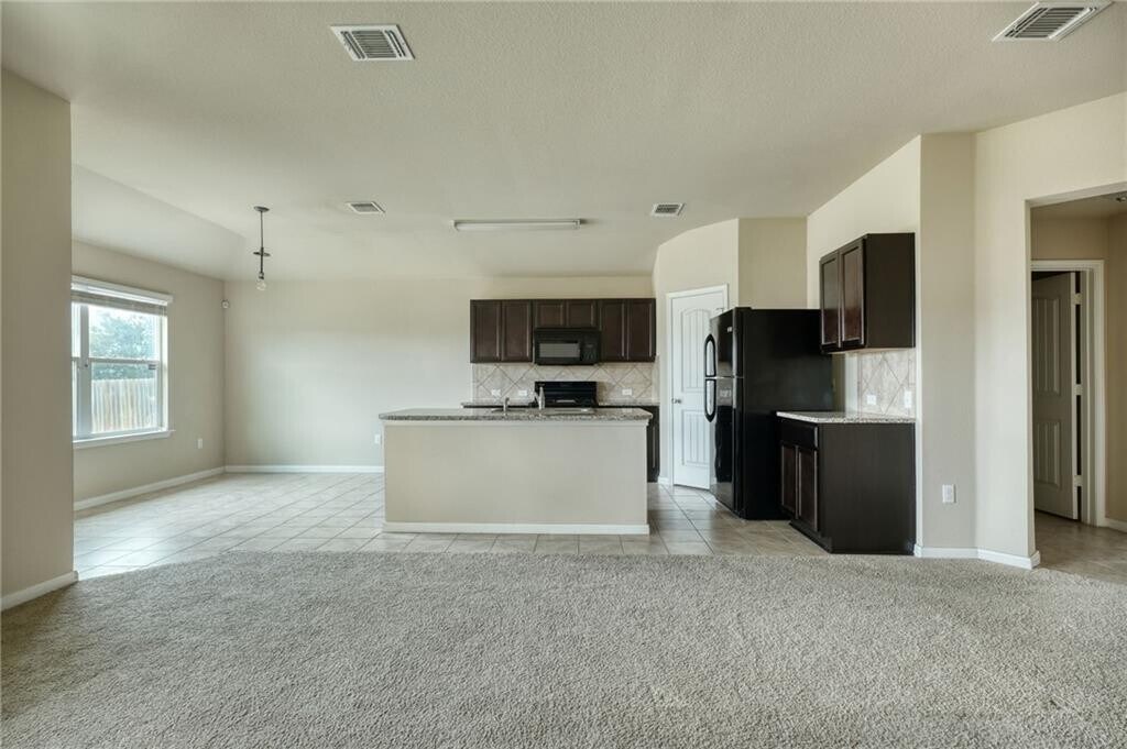 Chrissy CaputoFor Lease! Will be professionally cleaned and move-in ready March 1, 2026 (or possibly sooner). Beautiful 2017-built single-story 3 bed / 2 bath home in a highly acclaimed Kyle neighborhood, with easy access to I-35, toll roads, shopping, hospitals, and golf courses plus a convenient commute to the Tesla Gigafactory. Bright open layout with tons of natural light, island kitchen, gas range, corner pantry, granite counters, and tile backsplash. Oversized primary suite features a walk-in shower and huge walk-in closet. Spacious secondary bedrooms, covered patio, and a large backyard perfect for relaxing or entertaining. Refrigerator conveys. Landlord plans to remove carpet and install vinyl plank flooring and add cabinet pulls/knobs in kitchen and both baths (to be completed prior to move-in). Walking distance to neighborhood amenities including pool, park, and trails. Easy online application!