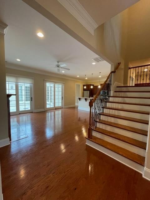 This is a beautiful two-story townhome in The Village at Woodside. The spacious master bedroom on the main level with 2 bedrooms upstairs. Large laundry with a office area. Family den off kitchen with butler's pantry,formal dining with a sitting area. Home has a private patio that adjoins the two-car garage. This home is in walking distance to restaurants,walking trail,healthcare practices and several other businesses.