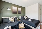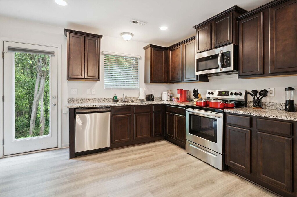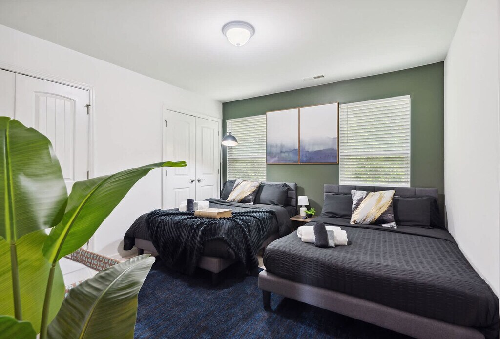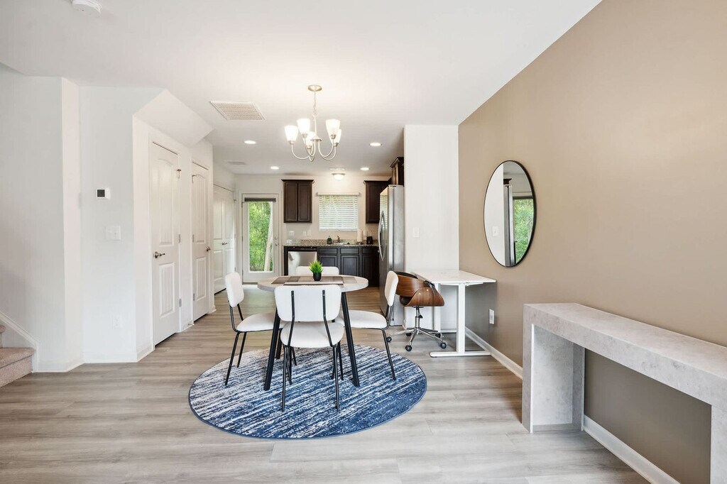 Stay in style in the eclectic city of Raleigh, ranked among the "Best Places to Live" by Money Magazine. This classy 1300 sq. ft. 3-bedroom and 2.5-bathroom townhome features a king-size bed and four plush full beds for your comfort. Enjoy lightning-fast Wi-Fi, a convertible sleeper couch, a fully equipped kitchen, and other luxury amenities, specially designed for your long-term stays. Step out to a lively neighborhood, minutes from the best restaurants, cafés, bars, and shops. Begin your day with a perfectly brewed cup of tea or instant coffee, prepared just the way you like it from the convenient coffee station in your upscale kitchen. Whether you're here for business or leisure, this space is designed to provide the perfect balance of comfort and convenience. With vibrant restaurants just minutes away, you might find yourself exploring the culinary scene in Raleigh each night. After a long day, it’s reassuring to know that your well-equipped kitchen and elegant dining table are ready to provide a 5-star dining experience right at home. Whether you choose to venture out or stay in, this space serves as the perfect home base for work, relaxation, and entertainment. Private garage parking and driveway are available. Public transit and ride shares are easily accessible for quick transportation around the city. We welcome up to two pets per reservation, each weighing under 35 lbs, with a fee of $49 per pet for stays of 1–6 nights. Additional charges apply for longer stays, and a one-time large pet fee applies for pets over 35 lbs. Bringing undisclosed pets into the unit may result in a minimum $500 fine and cancellation of your stay without refund. Situated in a vibrant neighborhood, this property places you within minutes of top attractions, dining, and nightlife. Enjoy easy access to the North Carolina Museum of Art, North Carolina Museum of Natural Sciences, Duke Energy Center for the Performing Arts, Pullen Park, PNC Arena, North Carolina State University, Morgan Street Food Hall, and Downtown Raleigh, all within a short drive. Quiet hours are enforced from 8:00 PM to 8:00 AM. Noise levels exceeding 80 decibels for more than 10 consecutive minutes will result in a $2,500 fine and immediate removal from the property without refund. Smoking is strictly prohibited anywhere on the premises, and tampering with smoke detectors will incur a $2,500 fine and immediate removal. Unauthorized guests will result in a $500 fine per person and cancellation of the reservation without refund. Self check-in is available with a keyless smart lock for a seamless arrival. The apartment is perfect for remote work, featuring a dedicated workstation with a standing desk and fast Wi-Fi, ideal for streaming, remote work, or video calls. A laptop computer is not included. [SI]
