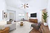 Lease Start Special: $1,000 credit if the lease starts within 2 weeks, or $500 if within 4 weeks Look & Lease: Apply within 24 hours of the first showing to receive up to 1 month free rent and $150 off select homes. Surrounded by wooded areas, the community offers wooded views, walking trails, nature areas, a playground and dog park. Enjoy the coming home to a peaceful community that is conveniently located while leaving the congestion behind. Welcome to Woodlands Terrell, where luxury meets country living. The Bayberry floorplan offers 4 bedrooms with 2 bathrooms, a large dine in kitchen, primary suite offers an en suite bath with separate vanities and large walk in closet. Each home offers luxury vinyl plank, easy care floors, granite style and quartz counter tops, European style cabinetry, new appliances and a full size utility room. The home has an adorable covered porch, two car garage and privately fenced yard. Enjoy maintenance free lawncare, you only need to maintain the fenced area. Pics are representative of floorplan, not actual.