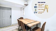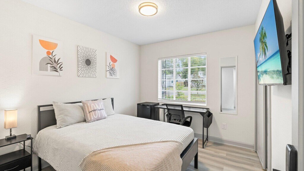 Room for rent: Welcome to The Coco Home: —a beautifully renovated property designed for comfort, convenience, and connection. With two thoughtfully crafted buildings, this home has something for everyone. The front house features 5 bedrooms and 2 bathrooms, all fully renovated and ready for you. Each bedroom is outfitted with a mini-fridge, work station, smart TV, full-size mirror, plenty of closet space, and high-speed Wi-Fi, ensuring a space that feels like home from day one. The shared kitchen is modern and functional, making meal prep a breeze. The backhouse offers a sleek vibe with just 2 private bedrooms, epoxy flooring throughout, and a brand-new kitchen. It’s the perfect private retreat for those who value style and simplicity. Conveniently located near public transport and all the amenities Jacksonville has to offer, The Coco Home is ideal for anyone looking for modern, simple living. With monthly cleaned common areas & beautifully updated spaces, this property is the obvious choice!