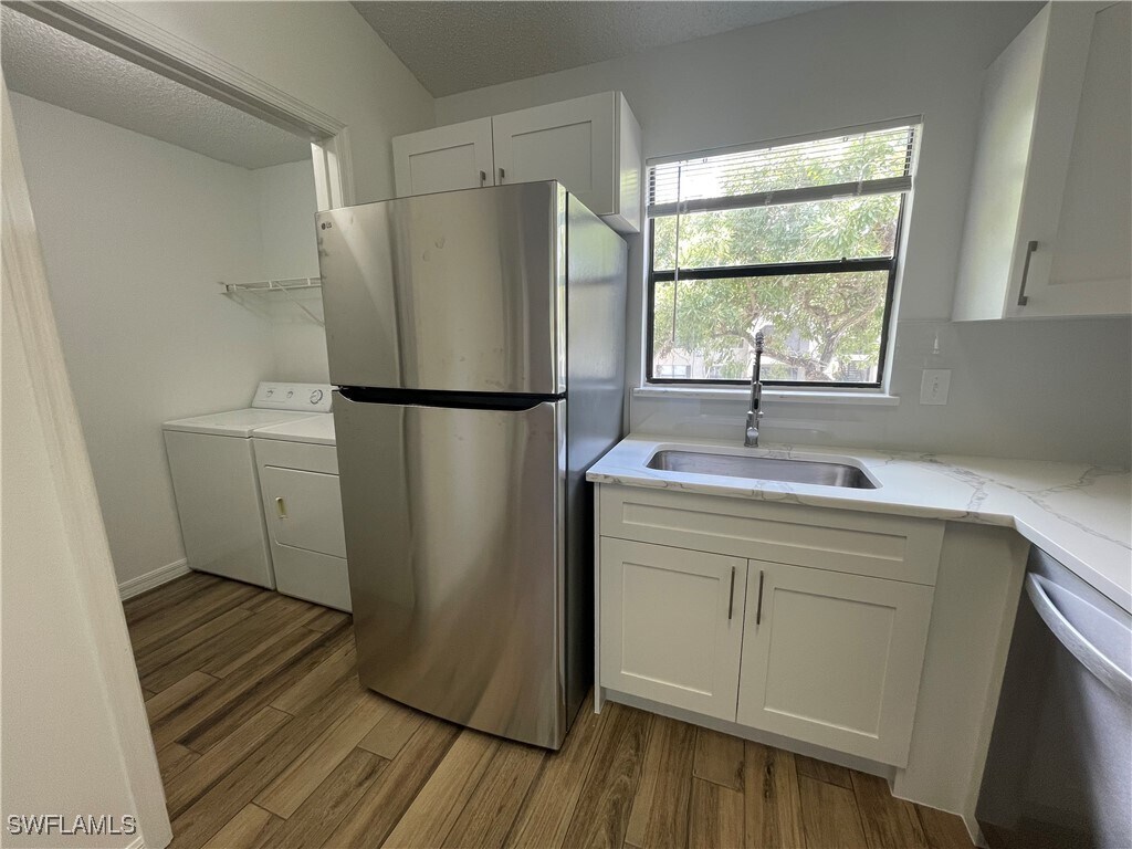 Welcome to the Oasis,an annual rental condo located in the heart of Naples,FL. This second-floor unit boasts two spacious bedrooms and two full bathrooms,perfect for those seeking a comfortable and stylish living space. The condo has been recently renovated,which includes a brand new kitchen,bathroom vanities,and flooring. The open concept great room is airy and inviting,featuring ceiling fans for added comfort. The master bedroom comes with a walk-in closet,providing ample storage space. The kitchen is equipped with a pantry and a breakfast bar,perfect for casual dining. Step out onto the screened and covered lanai for a breath of fresh air and enjoy the beautifully landscaped lake views. The condo also features a washer and dryer. The Oasis offers a range of amenities for residents to enjoy,including a BBQ-picnic area,a community pool,a tennis court,and a clubhouse. For those who enjoy staying active,the condo complex also features a sidewalk for leisurely strolls,an exercise room for workouts,and a play area. Experience the best of Naples living at the Oasis.