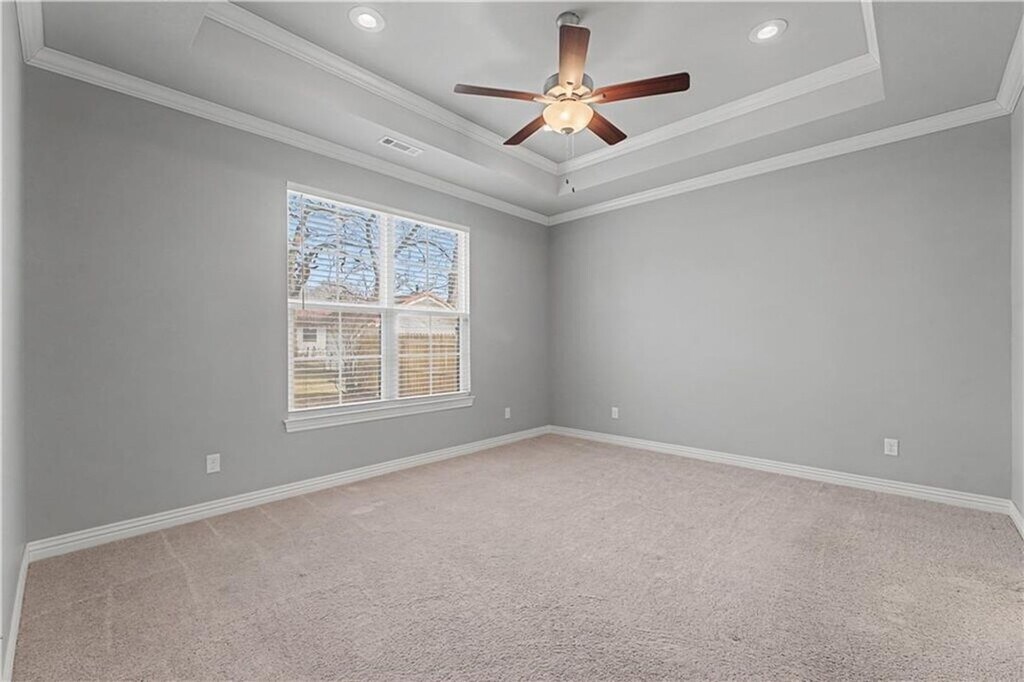 Flexible layout! Upstairs: two bedrooms and a bathroom; downstairs: primary en suite, open kitchen/dining/living area with fireplace and covered patio, laundry, a separate office or fourth bedroom and a full guest bathroom. Two car attached garage. Location: easy access to I-49, the trail system, and an easier route to downtown and the UA campus than Wedington.