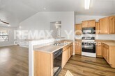 This welcoming single-story home offers a bright, open layout designed for comfortable everyday living and effortless entertaining. The spacious main living area flows seamlessly into an airy kitchen with a breakfast bar, abundant cabinetry, and generous counter space, creating a natural gathering place for cooking and conversation. Wood-style flooring runs throughout the home, complemented by plentiful natural light and ceiling fans that enhance the light, open feel of each room. The primary suite provides a relaxing retreat with a large walk-in closet and an en-suite bath featuring dual sinks and ample storage. Additional rooms offer flexible space for guests, hobbies, or a home office. Outside, a covered patio overlooks a spacious backyard with low-maintenance landscaping and a detached storage shed, offering plenty of room to relax, entertain, or create your own outdoor escape.