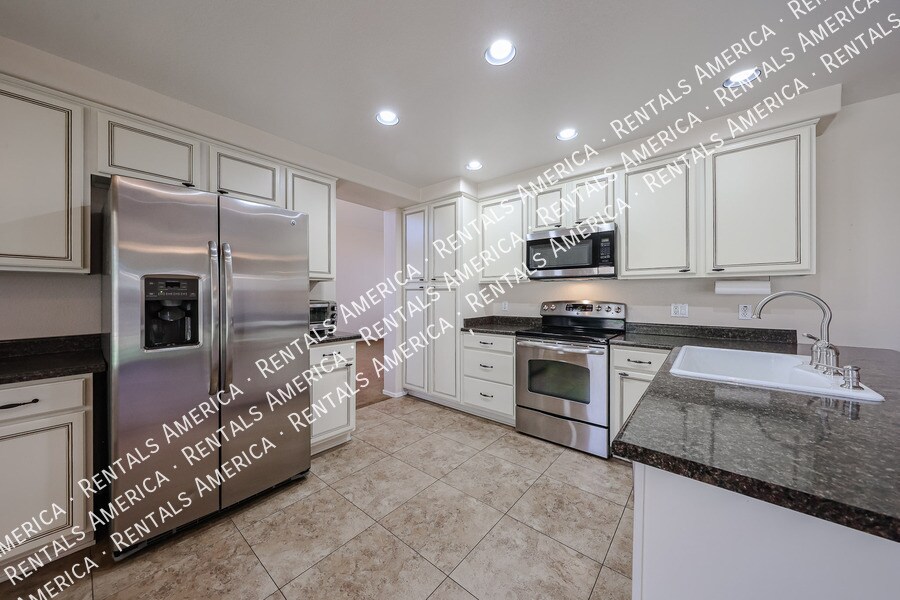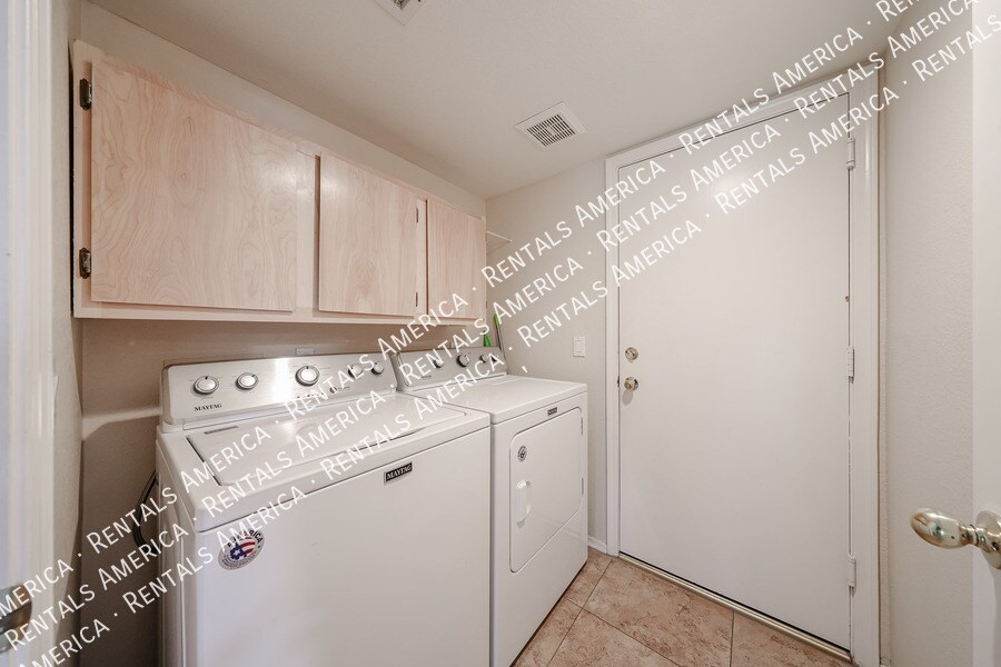 Welcome to this spacious 5bedroom, 3bath home located in the highly sought after Hillcrest Ranch community. This well designed floor plan offers generous living space with a bright and open layout, perfect for comfortable everyday living and entertaining. The home features a large living area, a functional kitchen with ample cabinetry, and a dining space that flows seamlessly into the main living areas. One bedroom and full bath are conveniently located on the main level, ideal for guests or a home office. Upstairs, the primary suite offers a private bathroom and plenty of closet space, along with additional wellsized bedrooms. The backyard provides room to relax or entertain, and the home is situated in a community known for parks, walking paths, and convenient access to shopping, dining, and major freeways. One Time Admin Fee: $300, Pet Deposit: $300/pet (if applicable), Service Fee: 2%. $39/month Resident Benefits Package, Helping Heroes Discount Available! Carpet Ceramic Tile Disposal Dogs Allowed Dryer Garage Pets Allowed Washer