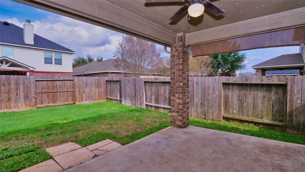 This beautiful one-story home,featuring four bedrooms,two bathrooms,and a 2-car garage,is located in the master-planned community of Fairfield. Open entry with architectural details that expand to the formal dining room,including arched walkways,crown molding,chair rail & box molding. A great open floor plan and LOTS of natural light! Formal dining! The well-equipped kitchen features gas cooking,a breakfast bars,granite,SS,42 in cabinets a perfect place to entertain! Spacious family room with cast stone fireplace! Dual sinks,soaking tub,separate shower with seat,and walk-in closet! Great secondary bedrooms! Covered patio with a gas stub! Great yard space with sprinkler systems! Award-winning Cy-Fair ISD schools! AMAZING Fairfield amenities! Easy access to 290 and 99! Close to shopping and restaurants! This property includes Refrigerator,washer and dryer. MLS# 88449496