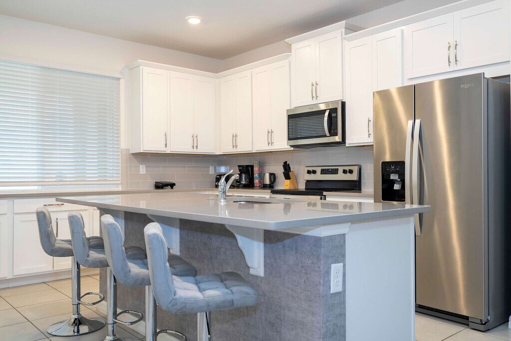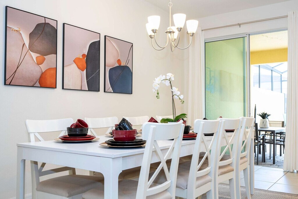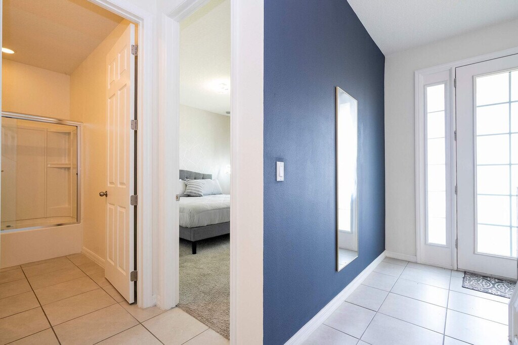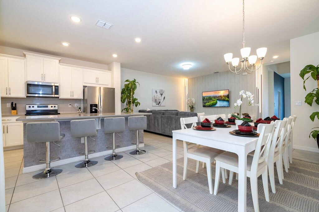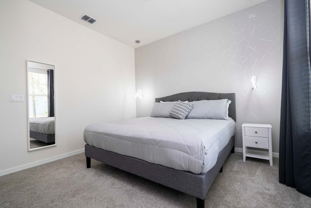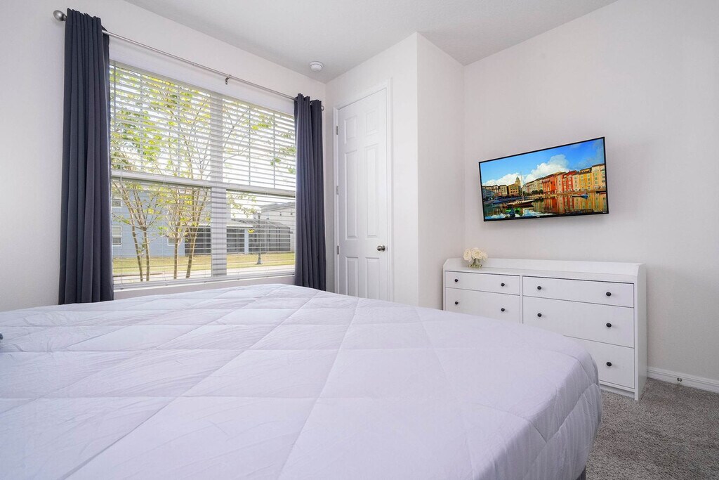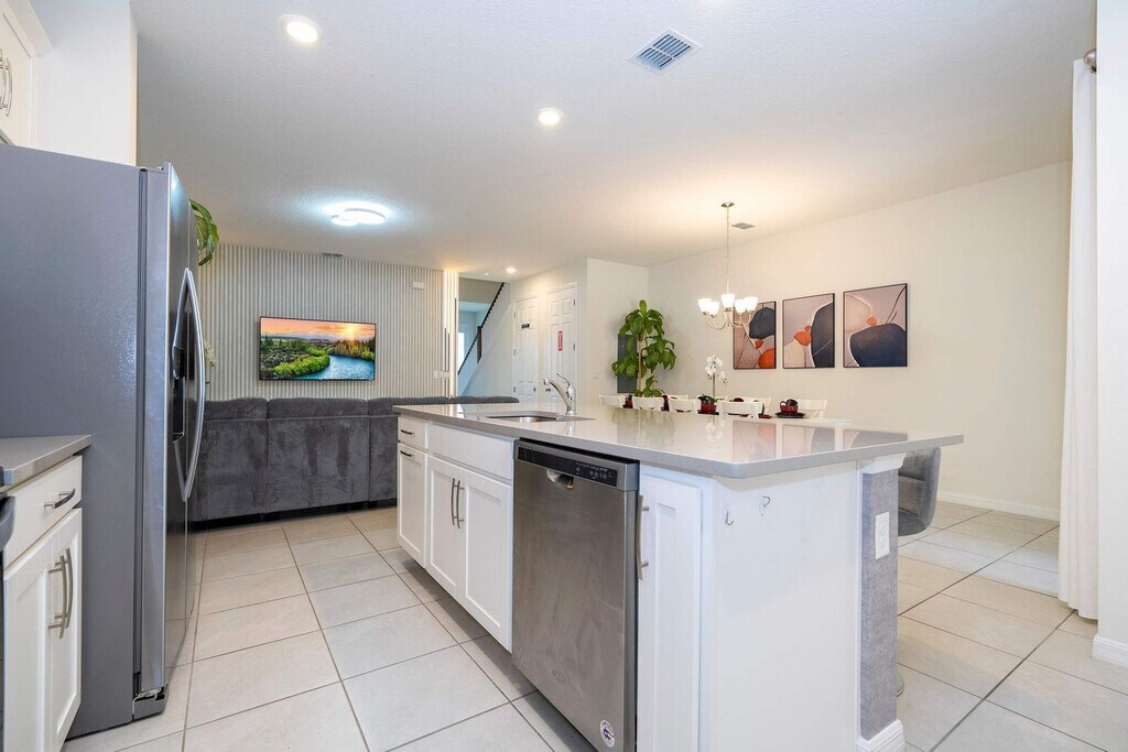 Enjoy the ultimate family getaway in this 4-bedroom Solara Resort townhome, where kids will love the Mario Bros and Moana-themed bedrooms. The Harry Potter family room sets the scene for magical nights. Relax in your private pool or explore the Super Clubhouse with heated pools, a surf simulator, and a splash pad. With plenty of space, comfort, and a prime location near Orlando’s top attractions, this fun-filled escape is perfect for unforgettable vacations. Welcome to your ultimate family retreat at this spacious 4-bedroom, 4.5-bathroom townhome in Solara Resort, where fun and comfort come together. This home is thoughtfully designed to create lasting memories, starting with a private king suite on the first floor, offering both convenience and privacy. Upstairs, gather in the whimsical Harry Potter-inspired family room for cozy movie nights or magical playtime. The second floor features a stunning king master suite, along with two vibrantly themed bedrooms your kids will love—one styled after Mario Bros and the other inspired by Moana. Each of these rooms includes three twin beds (2 singles and 1 pull-out) and a private bathroom. The open-concept main floor connects a spacious living area, elegant dining space, and fully equipped kitchen, perfect for relaxed family meals and quality time. Step outside to enjoy your private heatable pool and patio, complete with a convenient half bathroom for outdoor use. Extras like a full laundry room, complimentary Wi-Fi, and a starter welcome kit with essential amenities ensure your stay is as seamless as it is enjoyable. Parking is easy and stress-free. Guests are responsible for replenishing kitchen and bathroom supplies. Pool heating and BBQ grill use are available for an additional fee. Solara Resort in Kissimmee epitomizes the ultimate vacation destination. Nestled in the heart of Orlando's renowned attractions, this resort offers a prime location for an unforgettable escape. The resort boasts a wealth of amenities, including a magnificent Grand Clubhouse with fitness facilities, game rooms, and comfortable lounges. Solara's centerpiece is its expansive water park, featuring a heated pool, surf simulator, and splash pad for endless family fun. Dining options cater to all tastes, from casual to upscale, ensuring your culinary desires are satisfied. For outdoor enthusiasts, the resort offers basketball courts, sand volleyball, and a soccer field. Tranquil spots like walking trails, lakes, and lush gardens provide relaxation amidst the excitement. With gated entry and 24/7 security, safety is paramount. Nearby, you'll find shopping outlets and dining options, making Solara Resort a haven for both adventure seekers and those seeking relaxation. Quiet hours are between 22:00 and 8:00.