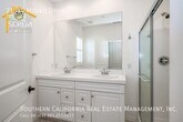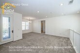 Beautiful two-bedroom, two-bathroom, two-story home located in the gated community of Villa Metro. The entrance hallway leads to a full bedroom with carpet flooring, a sliding glass door opening to a spacious patio, and an en-suite bathroom on the ground floor. As you ascend the carpeted stairs, you reach an open floor plan that includes the living room, dining area, and kitchen. The bright kitchen features a center island, granite countertops, white cabinets with brushed silver hardware, and essential stainless-steel appliances, including a gas stove, single oven, microwave, dishwasher, and refrigerator. There is a covered balcony accessible from the living area. Upstairs, you'll find another full bedroom and a full bathroom. The bathroom features dual sinks and a large walk-in shower. There is a convenient laundry closet upstairs with a stacked washer and dryer. Additional features a two-car attached garage and shutters throughout. Enjoy the resort-style community amenities, including a pool and spa, all conveniently located near restaurants and shopping. *The owner may consider a small pet. For inquiries about this property, please email . To schedule a viewing appointment, visit