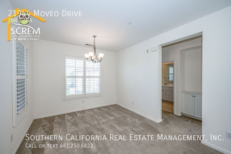 There is currently a 2 Bed 2 Bath Home for rent with 1,167 sq ft listed at 21944 Moveo Dr. It is Available Now.