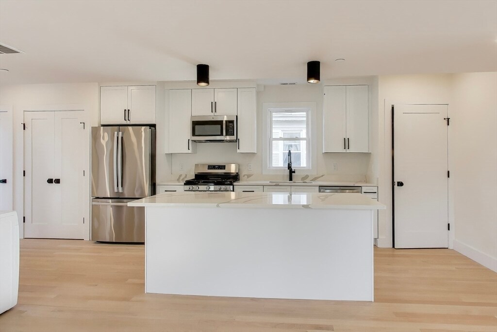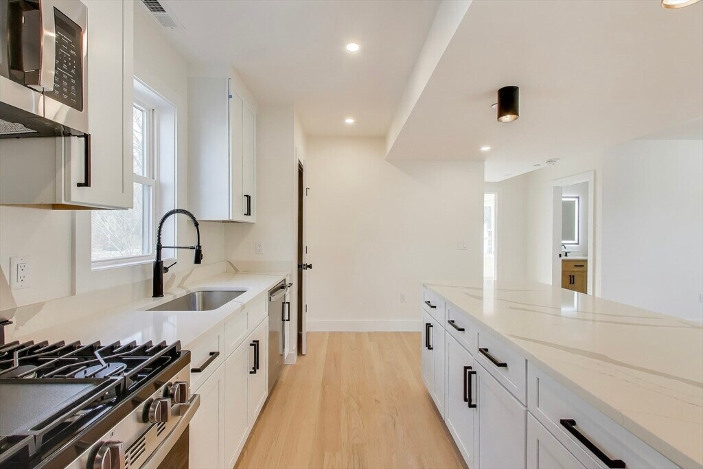 Available Sept 1 2026! Come enjoy this fully gut renovated condo-quality apartment with 3 beds and 2 baths in an incredible location in Dorchester's Lower Mills within walking distance to the Ashmont Red Line T Stop! Each apartment was renovated from the studs and features high-end finishes starting with the kitchen which has beautiful white shaker cabinets with quartz countertops and s/s appliances! You'll love the open concept flow of the kitchen and the living space that gets flooded with light. There are three large bedrooms including one primary suite that features a large primary bathroom. The unit also features brand new hardwood floors,recessed lighting throughout,and in-unit laundry. This unit has a private deck in the rear along with access to a shared yard! Off street parking available for $100/mo. Incredible location in Dorchester close to the T,shopping,restaurants and parks. First month/last month rent due at lease signing. MLS# 73501921