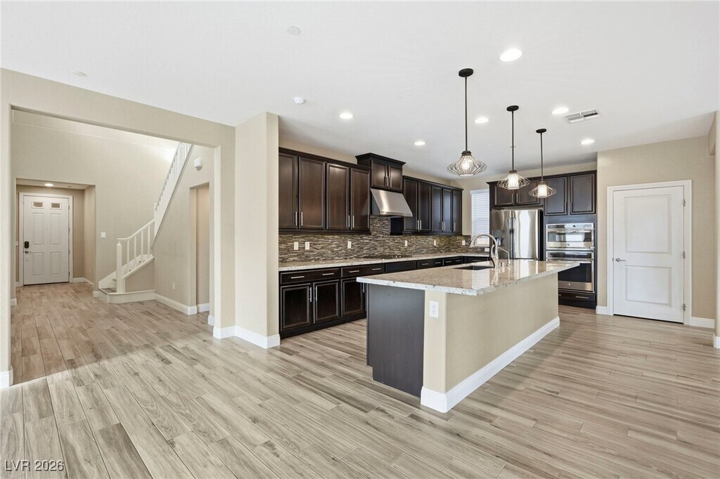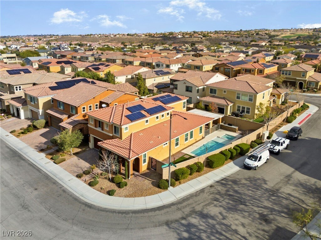 Welcome to this beautifully maintained 4-bedroom, 3.5-bath home offering 2,785 sq ft home in the heart of Inspirada. This home provides a 3-car tandem garage and solar panels, providing both convenience and energy efficiency. A private bedroom downstairs with full bath and attached flex room. The gourmet kitchen is the heart of the home, boasting a large center island, gas cooktop, double ovens, stainless steel appliances, and abundant cabinetry. Upstairs, you’ll find the spacious primary suite, along with a loft ideal for a media room or secondary lounge. The primary suite offers a large dual-entry walk-in closet. The spa-like primary bathroom features dual sinks, additional vanity space, soaking tub, and walk-in shower. Step outside to your private backyard oasis — an entertainer’s dream — featuring a covered patio, outdoor fireplace, built-in grilling station, and a sparkling in-ground pool and spa. Luxury, flexibility, and resort-style living — all in one exceptional home.