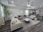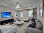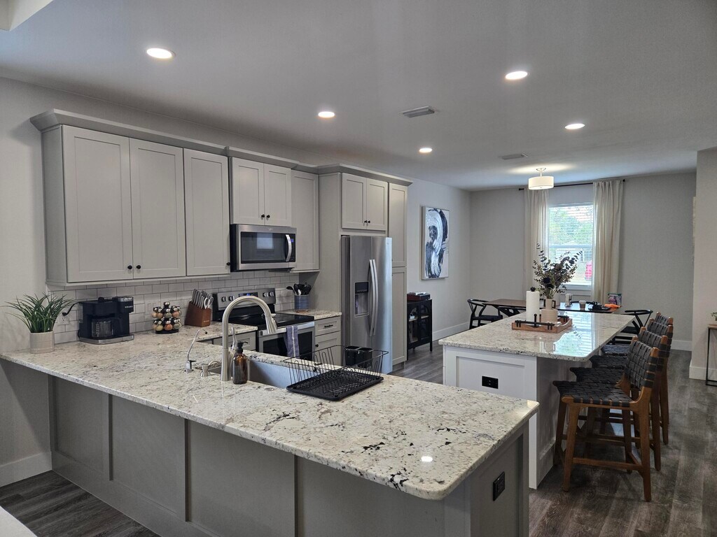 Discover comfort,and style in this fully furnished 3-bedroom, 2-bathroom home. Perfect for relocation, work travel, or short-term stays. The split floor plan with open-concept living, dining, and kitchen areas create a welcoming space.The living room features a sofa bed and smart TV, with a six-person dining table and bar seating nearby. The fully stocked kitchen has modern appliances and ample counter space.The master suite includes a king bed, smart TV, walk-in closet, desk, and a luxurious bathroom with a double vanity and walk-in shower. Two queen bedrooms share a spacious second bathroom. A laundry room with a washer and dryer adds convenience. All utilities and WiFi included mth to mth (until March). 700 score, proof of income, good rental history, half rental amount deposit.