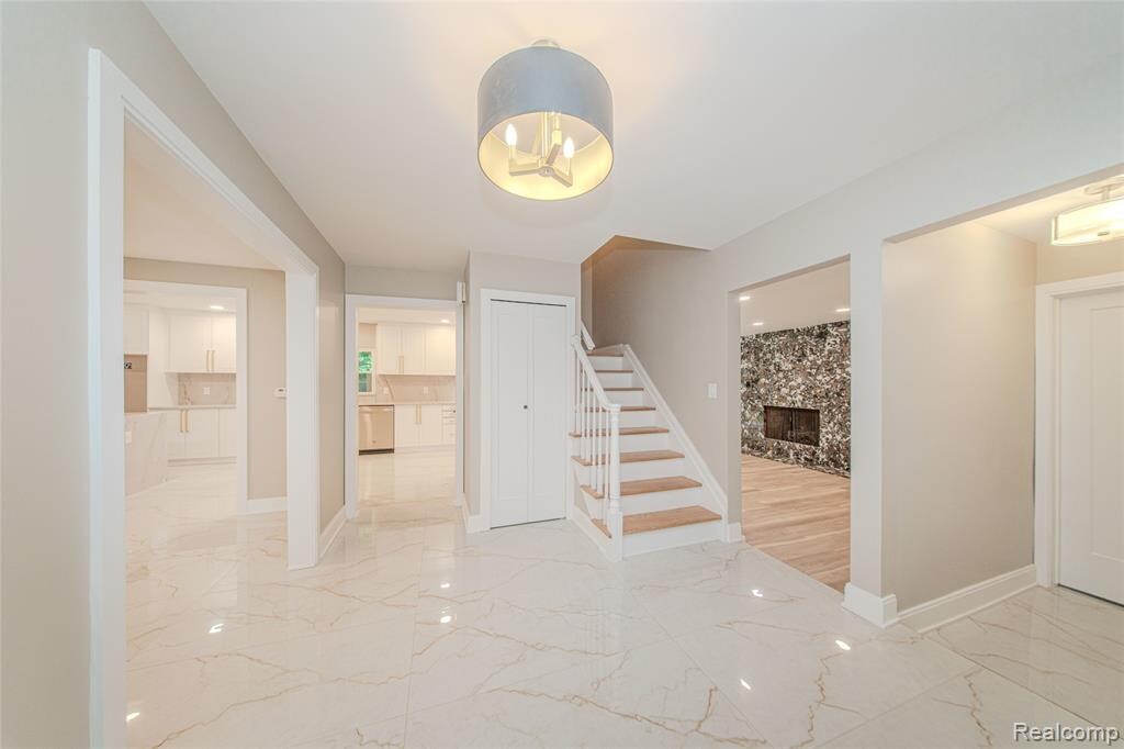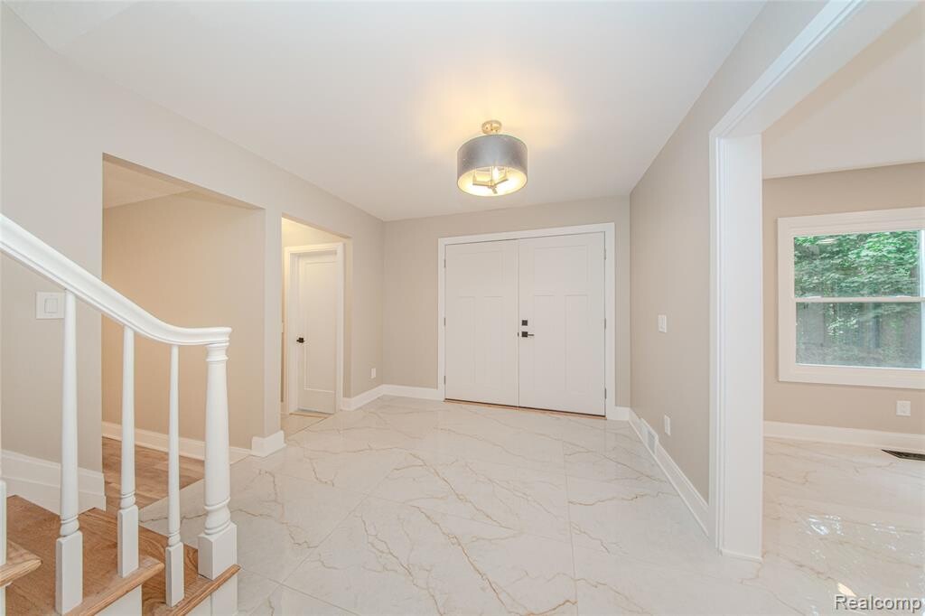 Completely renovated Beverly Hills Colonial situated on a picturesque 0.53-acre lot along the Rouge River! This stunning 4-bedroom, 2.1-bath home offers just over 2,750 square feet of thoughtfully updated living space. The heart of the home is a gorgeous open-concept kitchen that flows seamlessly into the living room—perfect for entertaining. The family room has been beautifully renovated with designer finishes and ample natural light. Upstairs, you'll find refinished hardwood flooring and completely remodeled bathrooms. The finished daylight basement provides additional living space ideal for a home office, gym, or recreation area. Notable updates include a brand-new roof, new garage doors and openers, windows, baths and kitchen, a whole-house backup generator, and a 3-car attached garage. Enjoy outdoor living with a newly installed stamped concrete walkway and spacious backyard patio. The large, private backyard and side yard offer peaceful views and room to relax or play, This move-in-ready home combines charm, functionality, and top-to-bottom updates in one of Beverly Hills' most serene settings!