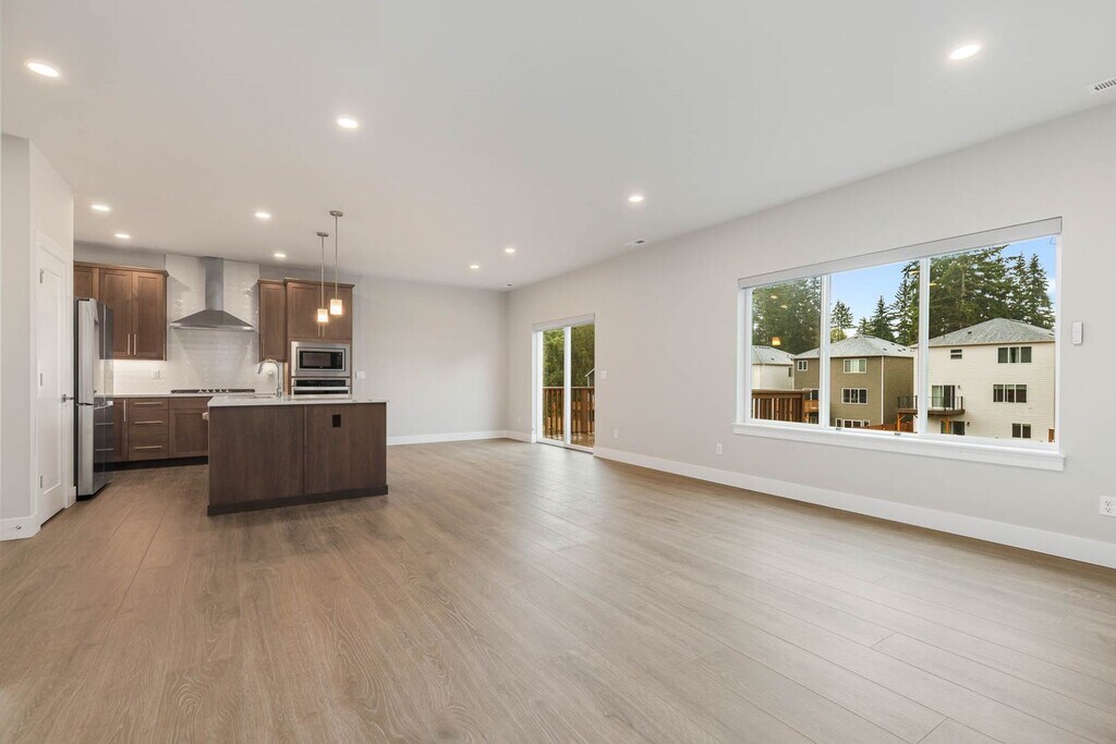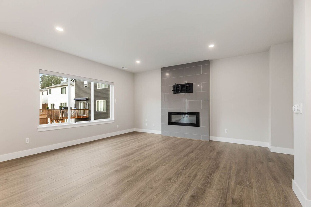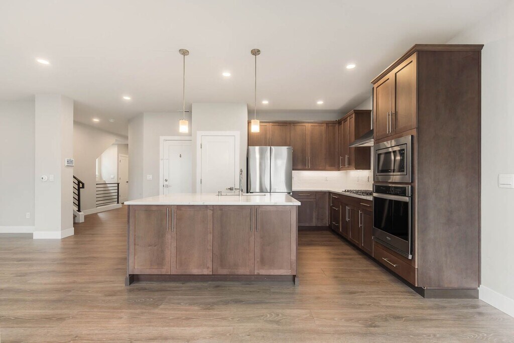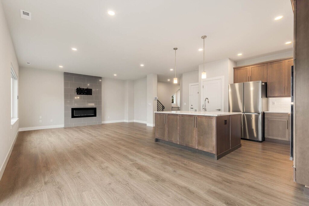 This Armstrong Daylight floor plan has everything you’re looking for. The open-concept main level features a chef’s kitchen with premium finishes, a large island, gas cooktop, and plenty of space for entertaining. The living room showcases soaring ceilings, an electric fireplace, and oversized windows that fill the space with natural light. Step out onto the deck, perfect for morning coffee or evening BBQs. Upstairs, you’ll find two additional bedrooms, a full bath, a laundry room, and a versatile nook ideal for a home office or cozy reading corner. The spacious primary suite offers a spa-like retreat with dual sinks, separate tub and shower, and a generous walk-in closet. The lower level provides a large rec room, an additional bedroom with a ¾ bath, and direct walk-out access to open green space. A second deck extends the living outdoors, offering serene views and room to relax or entertain. Don't miss out to call this place home! *Under-stair storage is reserved for the owner and will remain locked. Required Resident Benefit Program for an additional $36.50 per month. Program details and benefits can be found at