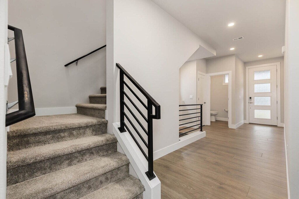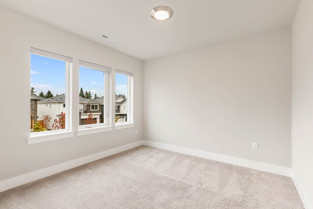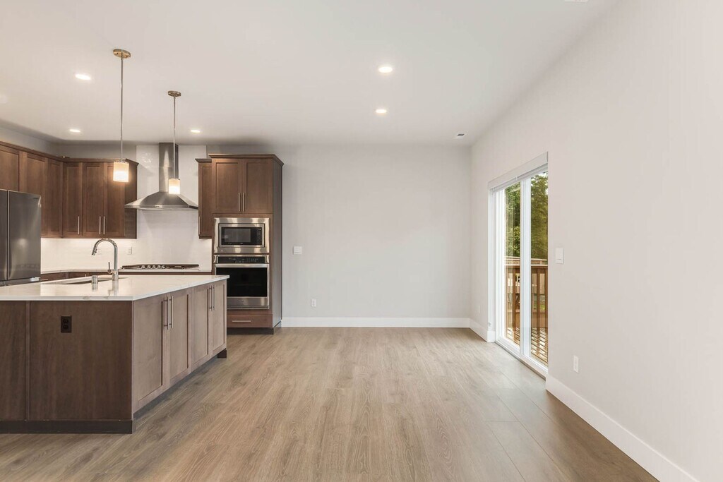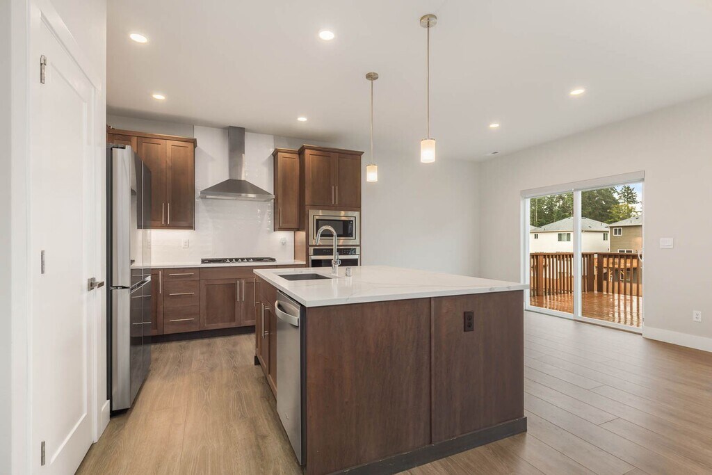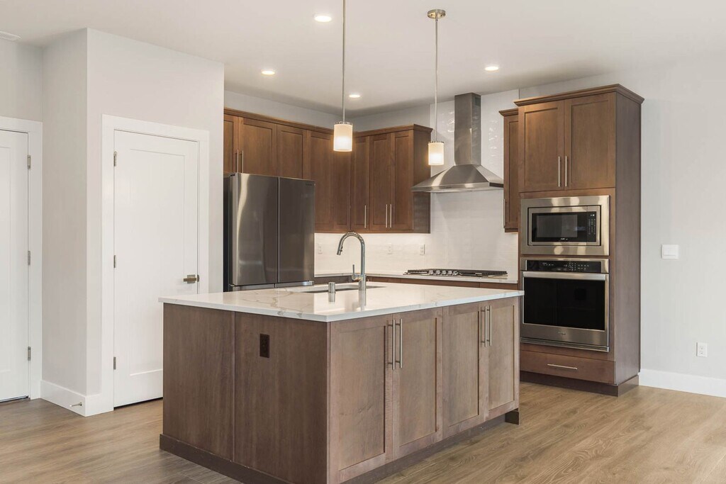 This Armstrong Daylight floor plan has everything you’re looking for. The open-concept main level features a chef’s kitchen with premium finishes, a large island, gas cooktop, and plenty of space for entertaining. The living room showcases soaring ceilings, an electric fireplace, and oversized windows that fill the space with natural light. Step out onto the deck, perfect for morning coffee or evening BBQs. Upstairs, you’ll find two additional bedrooms, a full bath, a laundry room, and a versatile nook ideal for a home office or cozy reading corner. The spacious primary suite offers a spa-like retreat with dual sinks, separate tub and shower, and a generous walk-in closet. The lower level provides a large rec room, an additional bedroom with a ¾ bath, and direct walk-out access to open green space. A second deck extends the living outdoors, offering serene views and room to relax or entertain. Don't miss out to call this place home! *Under-stair storage is reserved for the owner and will remain locked. Required Resident Benefit Program for an additional $36.50 per month. Program details and benefits can be found at