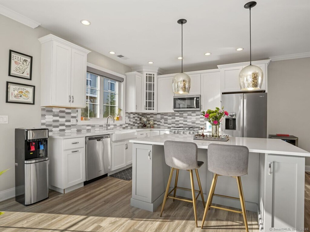 Call for Availability - Welcome to The Rivington, where resort style amenities meet modern luxury. Be the first tenant to rent this bright and spacious end unit townhouse offering an exceptional living experience, perfect for both relaxation and entertaining. Updated light fixtures throughout the home. Enjoy the beautiful kitchen featuring stainless steel appliances, quartz countertops, center island, large pantry, and slider leading to the outdoor patio. Crown molding and hardwood floors flow throughout the main level, with an open floor plan connecting the living room and dining area-perfect for entertaining. Oversized windows allow for an abundance of light. Upper level continues to impress with vaulted ceilings in both bedrooms. The primary bedroom features a full bathroom with double sink vanity and walk-in-closet. The lower level includes direct access to the two-car tandem garage. Rivington amenities include pickleball and tennis courts, two outdoor swimming pools, indoor lap pool, state of the art gym, aerobics room, sauna, locker rooms, movie theater, billiards, walking trails, basketball, bocce, firepits with outdoor TVs, and playground. Candlewood Lake, Danbury Mall, outstanding restaurants and shops nearby. Minutes to I84 for easy commute to NY and Fairfield County. MLS# 24141112