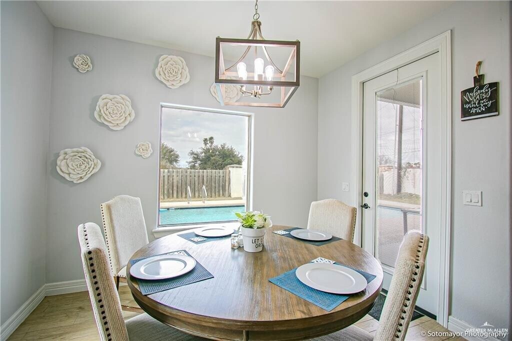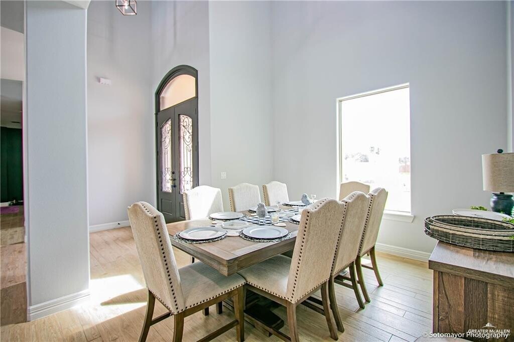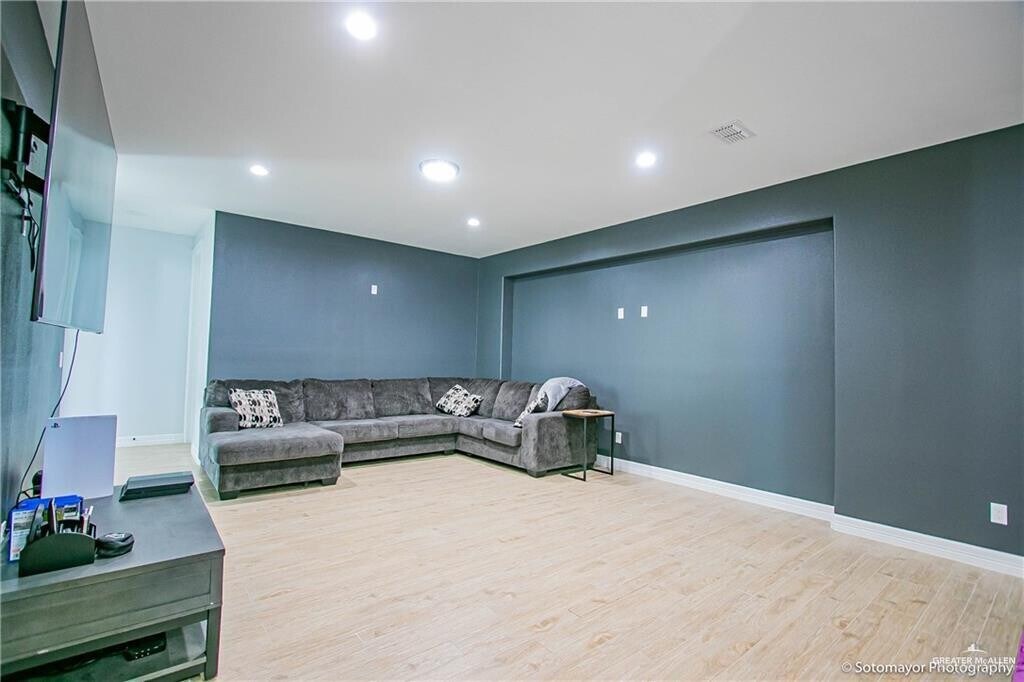 Stunning custom-built stucco home with a beautiful clay tile roof located in the highly desirable Sharyland area. This property features 3 bedrooms,2.5 bathrooms,and an open-concept layout with high-end finishes throughout. The kitchen is designed to impress with quartz countertops,a gas range,gray tile backsplash,pantry,and a traditional wall-mounted pot filler — perfect for cooking enthusiasts. The home offers two spacious living areas,ideal for a TV/movie room,home office,or additional entertaining space. The primary suite is generously sized and includes a double-sink vanity,jetted garden tub,separate shower,walk-in closet,and private toilet area for added comfort. Step outside to a spacious backyard featuring a sparkling pool ready to enjoy all summer long — pool maintenance is included. Call today for more information or to schedule a private showing!