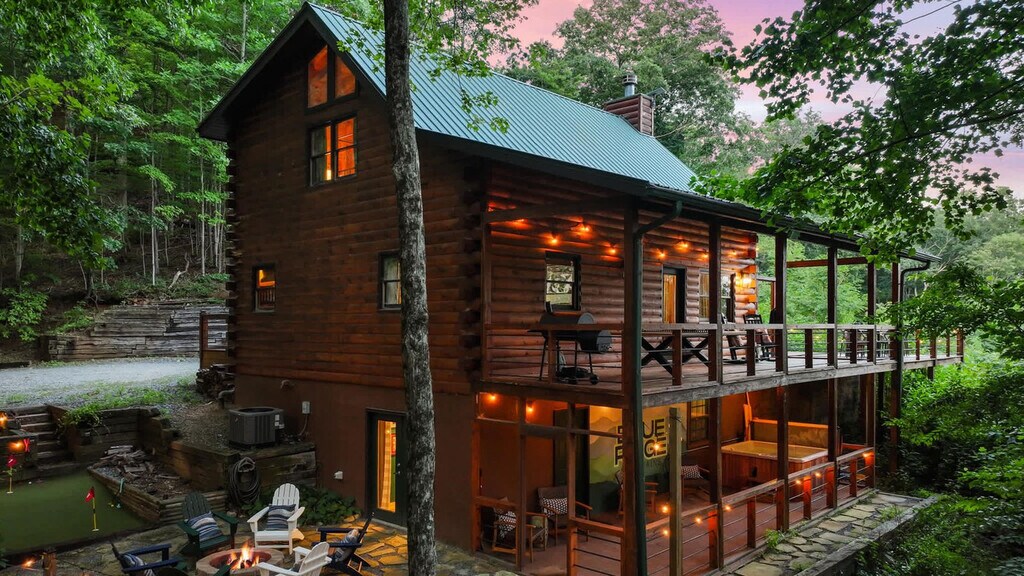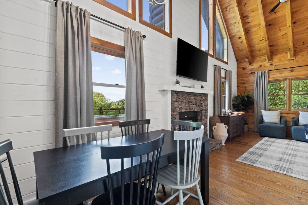 This 4-bedroom home is in a prime location in Blue Ridge, GA, offering everything you need for an amazing vacation. Enjoy the expansive deck with stunning views, a private sauna, hot tub, fire pit, outdoor patio and dining area, BBQ grill, and ample parking. The home is dog-friendly, allowing up to 2 dogs for a fee of $125 per stay. Welcome to your mountain escape in Blue Ridge! This spacious and inviting mountain retreat is the perfect home base for your next adventure. With 4 cozy bedrooms and 3 full bathrooms, it comfortably sleeps up to 11 guests, making it ideal for families, friends, or multi-generational getaways. Step inside and unwind in the warm and stylish interiors, where rustic charm meets modern convenience. Gather in the inviting living spaces, challenge each other in the game room, or whip up a delicious meal in the fully stocked kitchen. Outdoors is where this home truly shines. Relax and take in the fresh mountain air from the expansive deck, soak in the hot tub under the stars, warm up by the fire pit, or sweat it out in your private sauna. The outdoor patio offers even more space to dine, lounge, and enjoy the peaceful surroundings. Up to 2 dogs are allowed for $125 per stay, no cats please. Parking is available in the driveway for up to 4 cars. Nearby attractions include the Blue Ridge Scenic Railway, Mercier Orchards, Fall Branch Falls, Lake Blue Ridge and Marina, and the Blue Ridge Mountains Arts Association and Art Center. Enjoy local dining at Southern Charm Restaurant, Harvest on Main, Black Sheep Restaurant and Patio, Chester Brunnenmeyer’s Bar and Grill, and Toccoa Riverside Restaurant. Renting a car is a convenient option to explore the area at your own pace. Check-in is at 4pm and check-out is at 10am. No parties allowed—violations may result in immediate termination of the stay. An exterior camera is installed solely to monitor our cleaning team for quality and security purposes. Guests must be 21 years or older to book this property. A remote work-friendly environment is provided with high-speed Wi-Fi and comfortable seating areas. [SI]