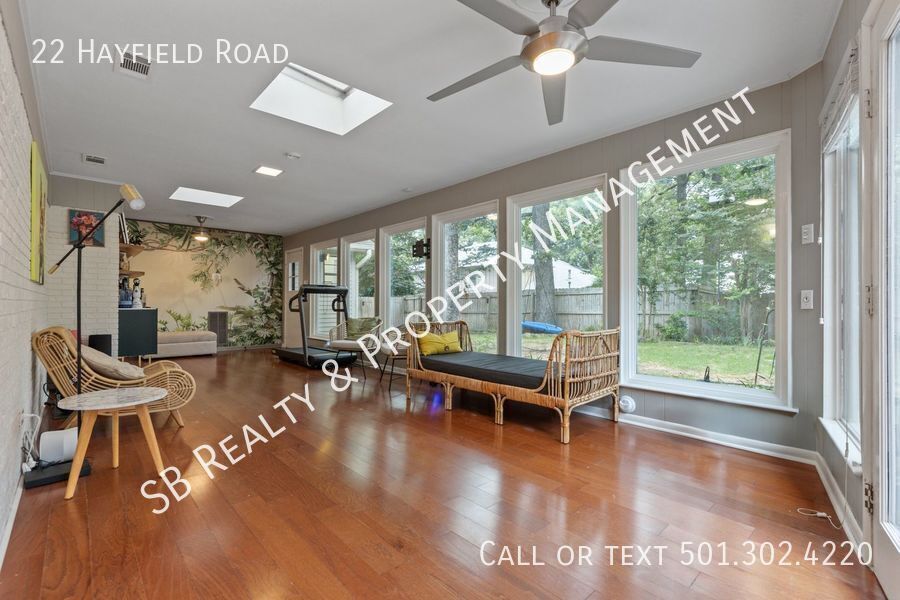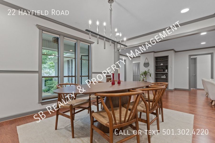 Welcome to 22 Hayfield Road in Little Rock available mid-September. This 3-bedroom, 3-bathroom furnished rental provides tasteful decor, 2 living areas, formal dining and eat in kitchen. Located near the Big Dam Bridge, you’ll have easy access to walking and parks. Utilities and Internet included. Furnished Month to month lease $4,500/mo $1,500 refundable deposit $200 nonrefundable cleaning fee Appliances Furnishings Internet Utilities