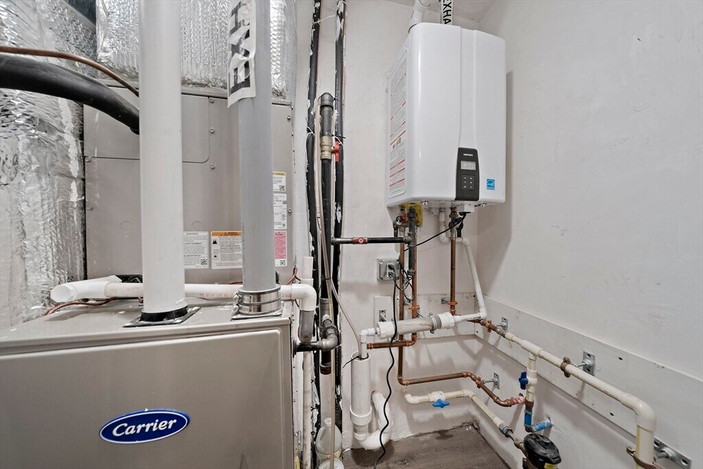 This gut-renovated (2023) first-floor residence offers a rare blend of luxury and high-end engineering in the heart of North Cambridge. Situated on a tranquil one-way street,the home boasts an expansive interior with high ceilings and new windows that illuminate a chef-inspired kitchen featuring premium stainless steel appliances and elegant quartz countertops. Every detail has been meticulously updated,from the designer bathrooms to the dedicated high-efficiency systems,including central AC,gas furnaces,on-demand tankless hot water,and in-unit laundry. Unparalleled safety is provided by a professional-grade fireproofing system featuring a heavy-duty sprinkler network and a dedicated water storage tank. Residents enjoy a private storage room in the basement,an assigned parking spot,and a common back deck perfect for outdoor entertaining. With a 92 Bike Score,the property is perfectly positioned just 0.5 miles from Alewife Station groceries and major institutions. MLS# 73505758