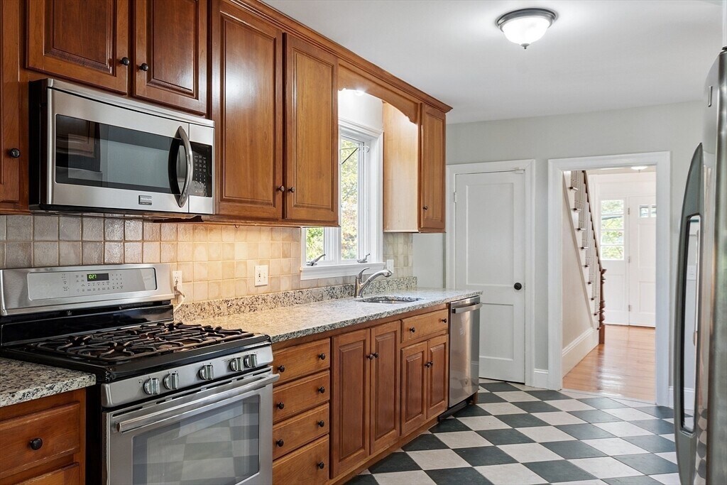 Fantastic unfilled 3 bedroom,2.5 bath duplex located on a picturesque lot available immediately for rent. Features include,open concept living room/dining room,kitchen w/lots of storage/cabinets,gas stove,3 generous sized bedrooms,a family room with fireplace and a second floor sitting room off the primary suite. Mostly wide pine flooring throughout along w/easy to maintain ceramic tiled kitchen and oversized mudroom w/custom closet and exterior access to the beautiful backyard and patio area just a few feet from the covered back porch. Plenty of off street parking,unfinished LL provides ample storage with shelving and exterior access. Located within a short distance to local area shopping,restaurants,gyms and easy access to major highways. Please note that this unit is half a duplex,not the entire home. The other unit is on the left,with separate entrance. Tenant responsible for all utilities except water,refuse removal. References,first,last and security. No pets. MLS# 73445022