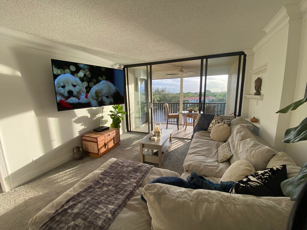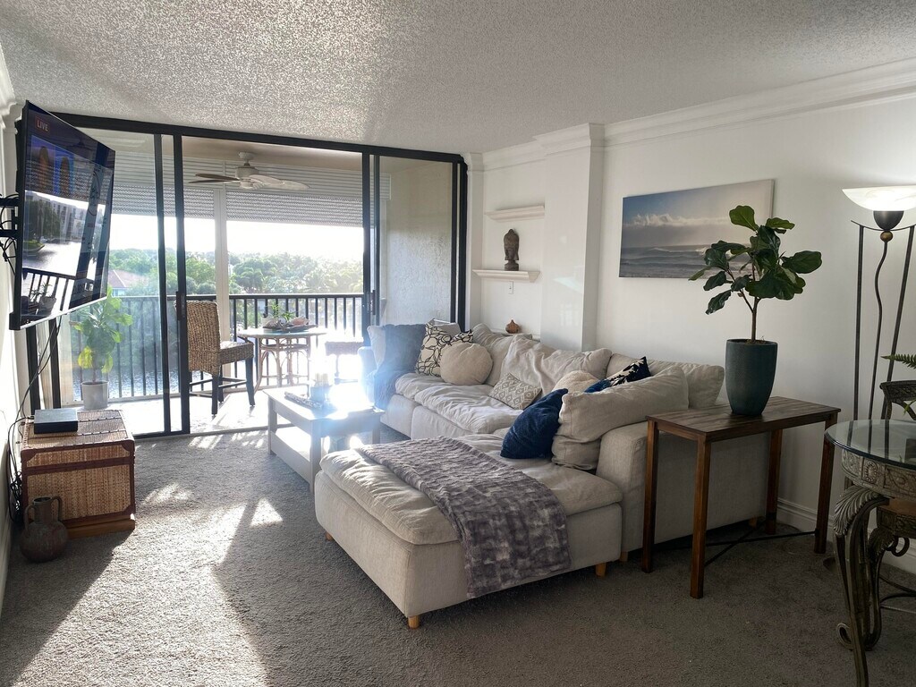 Gorgeous long water views in this 5th floor rare deluxe model 1 bd/ 1 and a half bath home in the most desirable Building 22 of the sought after waterfront community of Boca Bayou, the only bldg. w/ carports! Bldg. 22 also has its own pool! Beautiful southeast exposure and stunning sunset views! Furnished turnkey. Seasonal or annual rental, minimum 4 mos. Assigned covered carport. This 24 hr. manned gated community offers 5 heated pools, sauna, 2 gyms, lighted tennis courts, and dockage, as available. Brand new $4.5M clubhouse soon to be completed! 5 min. to the beach, Mizner Park, Royal Palm Place, Trader Joe's, Fresh Market, Publix, close to everything! Watch the parade of boats from your balcony! Cable tv/ HBO