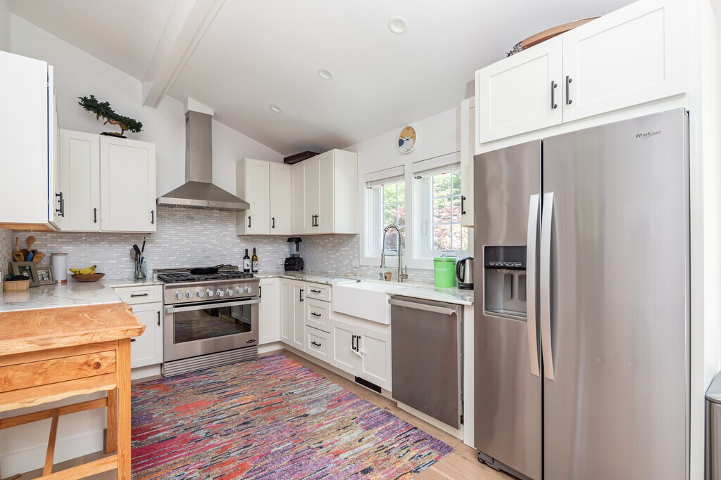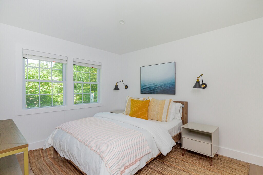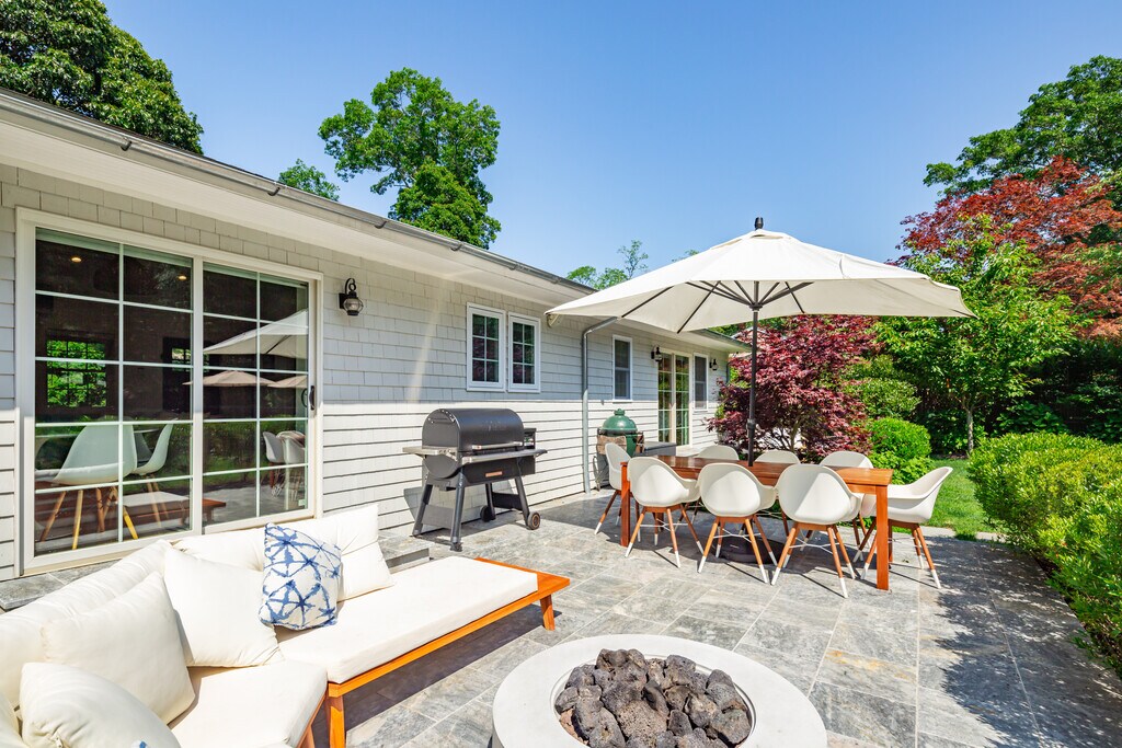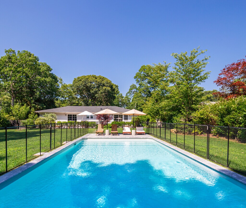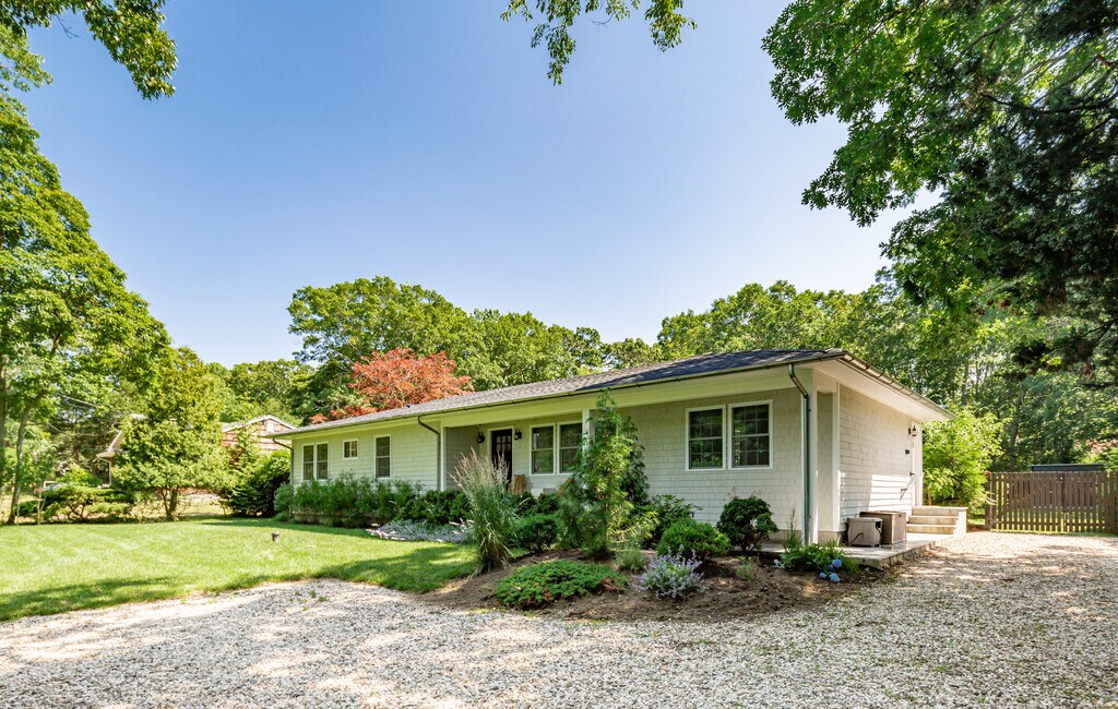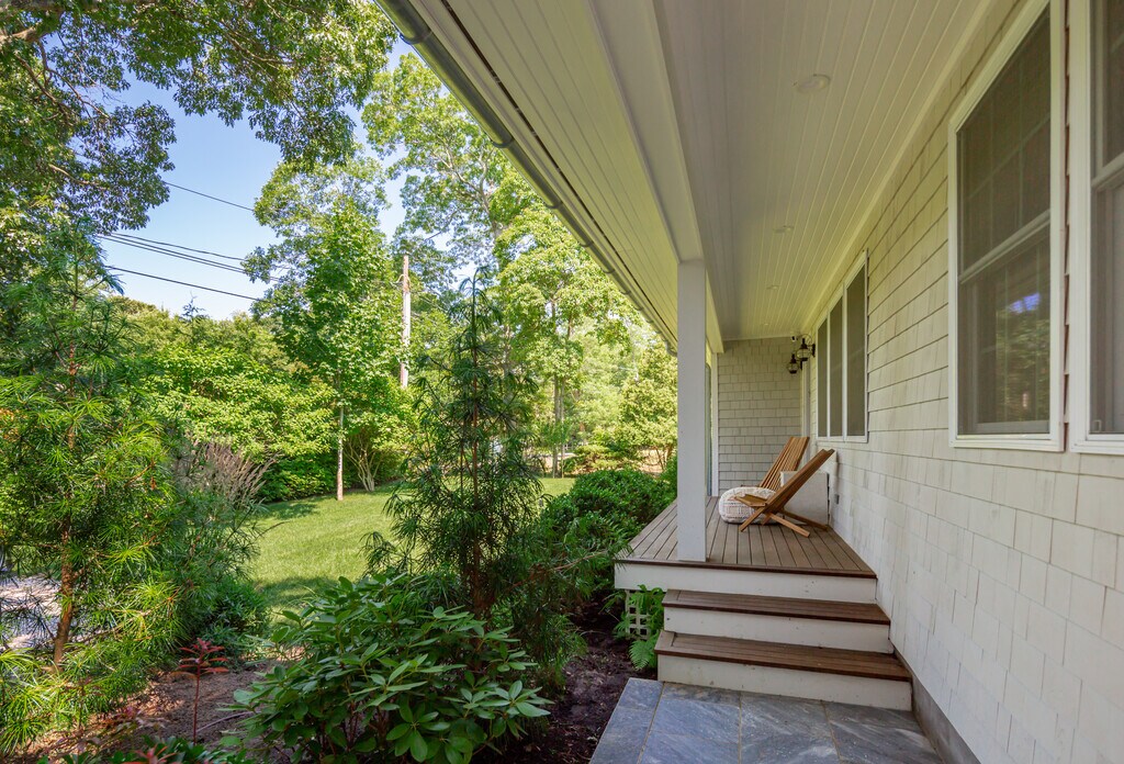 Located moments to beautiful bay beaches and marinas, sited on +/-.48 acres in a quiet neighborhood, is this completely brand new, exceptionally renovated 4 bedroom, 3 and a half bathroom traditional. The convenient one-level open floor plan has high ceilings and intricate details throughout. Featuring an expansive living room, top-grade kitchen, primary bedroom with ensuite bathroom, plus 3 guest bedrooms, all sited for privacy. There is a separate entrance/ mudroom with laundry and access to a finished lower level. Sliding doors off the living room and primary bedroom open to stone patios, sprawling green lawn, large oversized heated pool with its own lounging patio. The property is surrounded by hydrangeas, specimen trees, and many other beautiful plantings creating a private and peaceful setting. [[Rental Registration # 23-1078]] EH RR #: 25-985 Rental Terms: August - Labor Day: $42,000