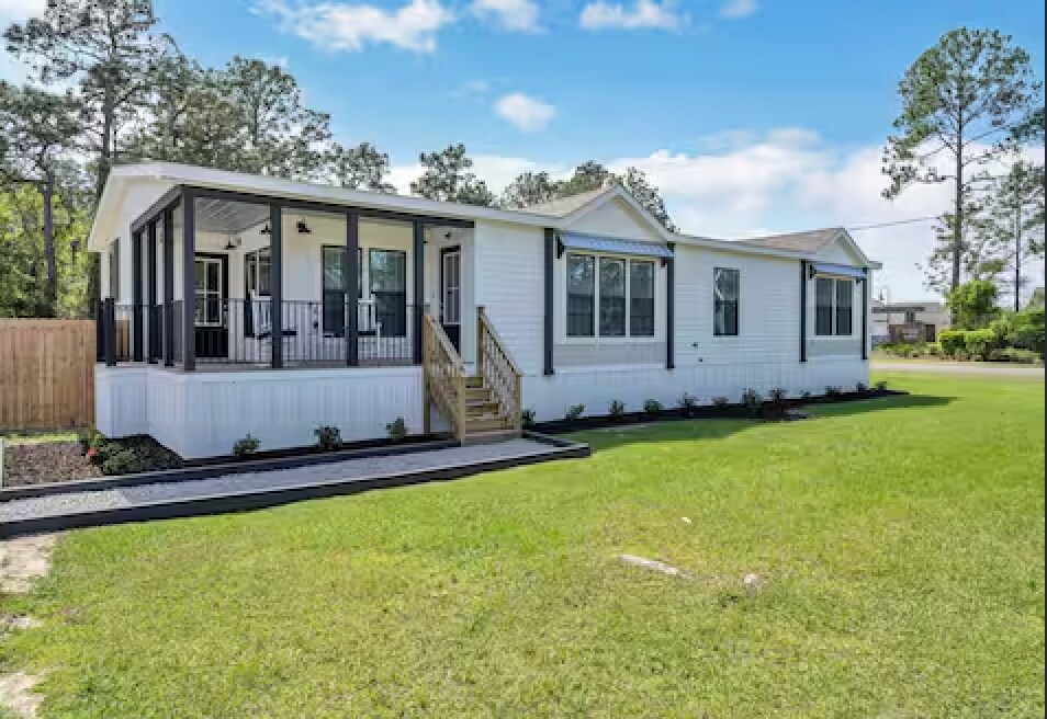 This is a 3 year old fully furnished manufactured home that is immaculate and like new. It is centrally located in the heart of Santa Rosa Beach and less than a mile from Walmart and other retail stores and dining. The beach is less than 2 miles away. Unit is a 3 BR 2 Ba farmhouse style with large kitchen and open living room. Home is decorated nicely and you will not find a nicer master bathroom. Unit has large fenced in yard with fire pit and barbecue area. Central heat and air. No pets and all tenants will need to pass a background check.
