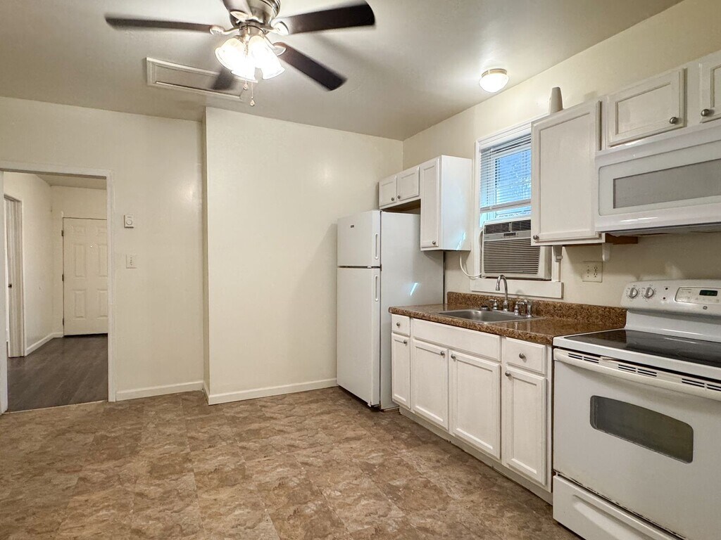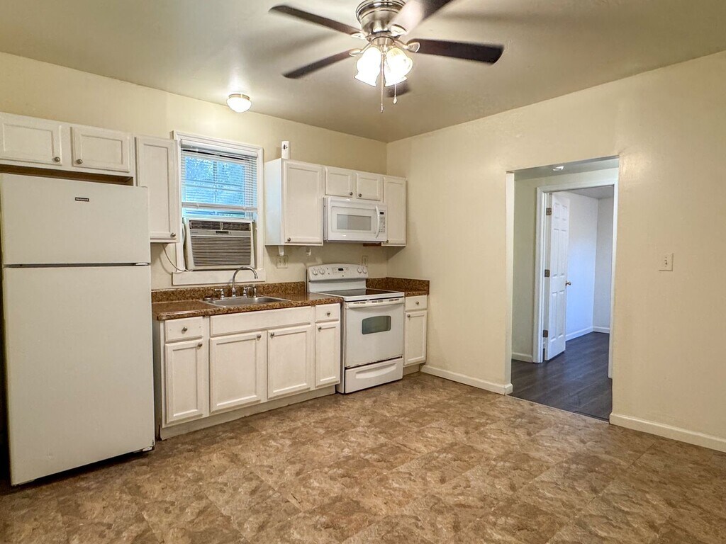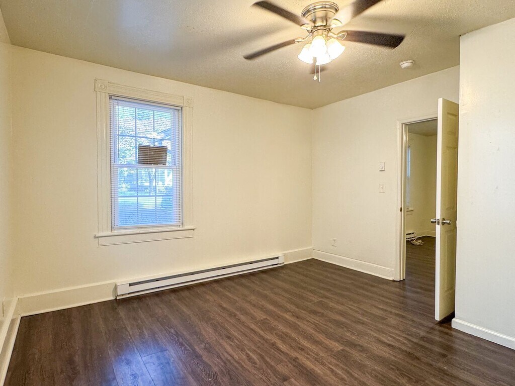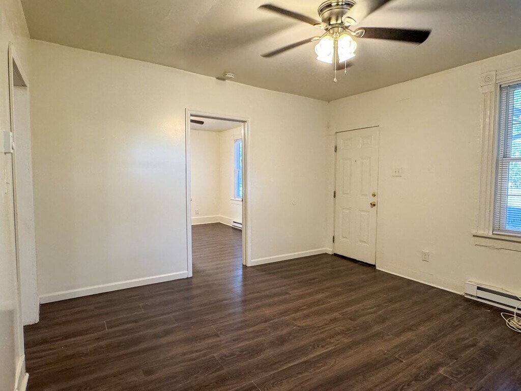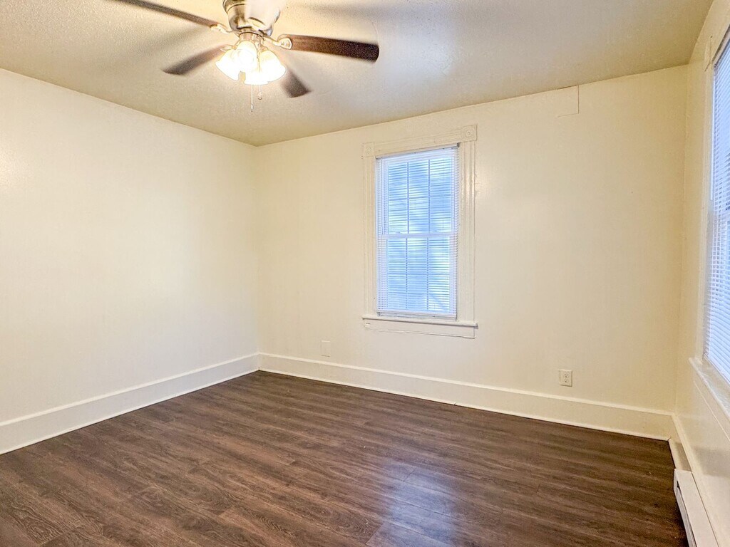 3 bedroom, 1 bath rancher offers approx. 908 sq ft of living space and has been recently remodeled. Living room, eat in kitchen w/ stove, refrigerator, microhood & newer counter tops & cabinets; laundry room equipped w/ washer & dryer for conv use only; new vinyl windows, laminate wood flooring throughout, ceiling fans throughout; window air units and electric baseboard heat; side/rear deck and private rear yard; covered front porch and off street parking; No Pets; No smoking inside the dwelling unit. Resident Benefit Package included in rent - ask for details!